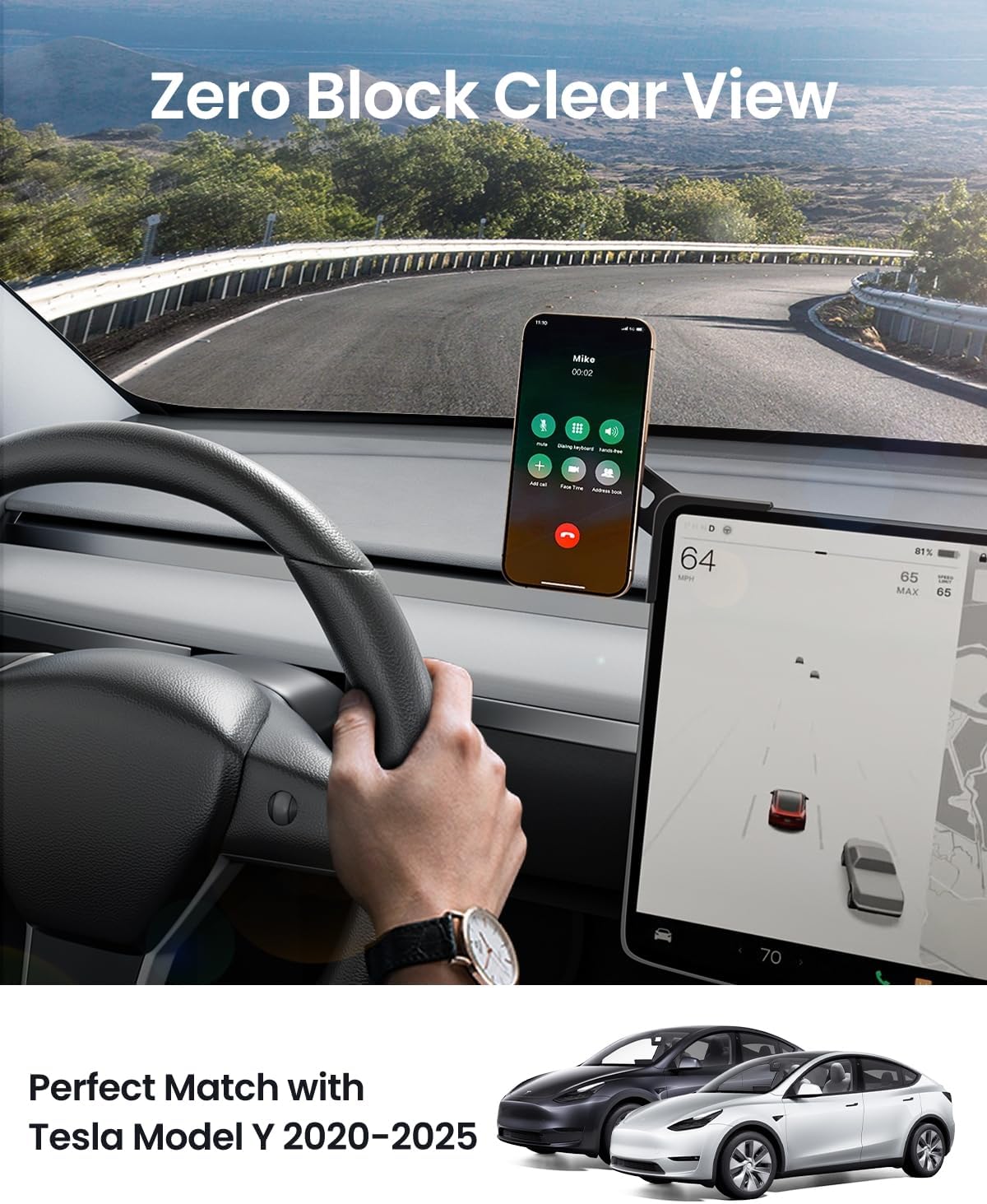 The REEVAA Tesla phone mount fit for New Model Y Juniper, Model Y 2020-2026 allows your phone to serve as an extended split-screen Tesla touchscreen. It ensures you can focus on the road while checking navigation, making it essential for daily commutes and long trips. Enhances your driving experience.