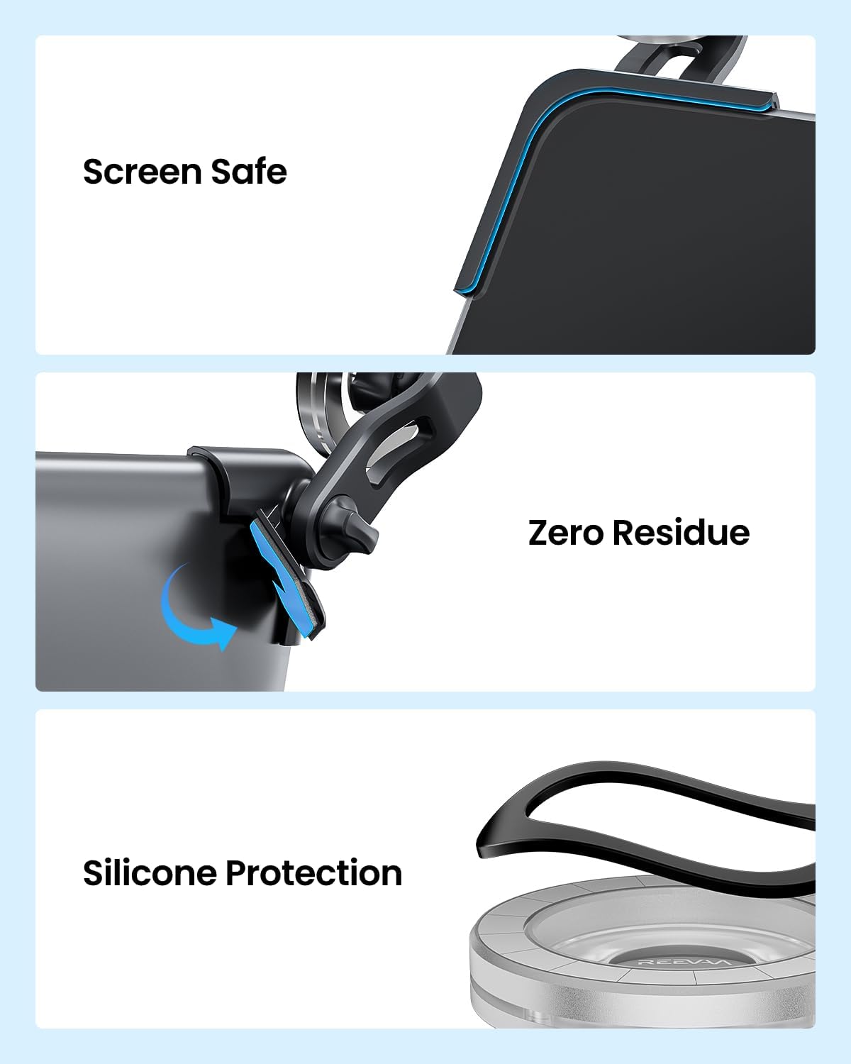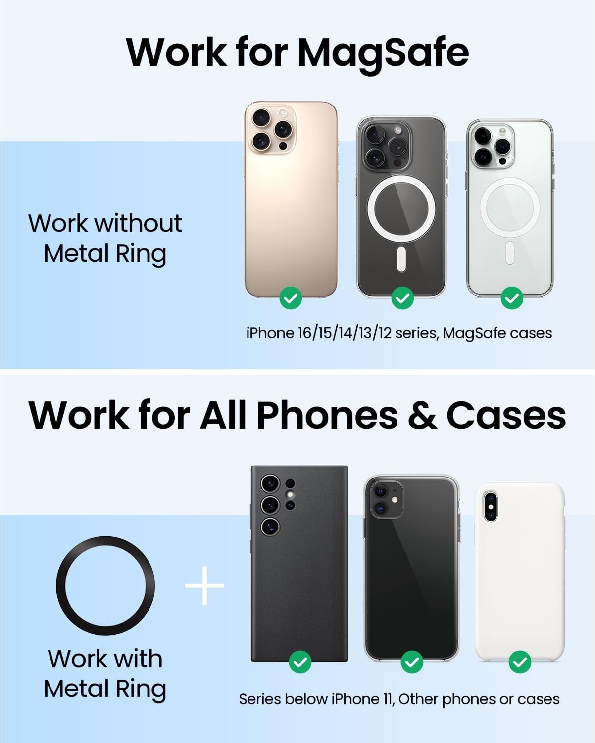 REEVAA Tesla Y Juniper phone mount is compatible with iPhone 16/15/14/13 series and official MagSafe cases. For other phones and non-MagSafe cases, the package includes a metal ring that enables MagSafe functionality. Simple and convenient!