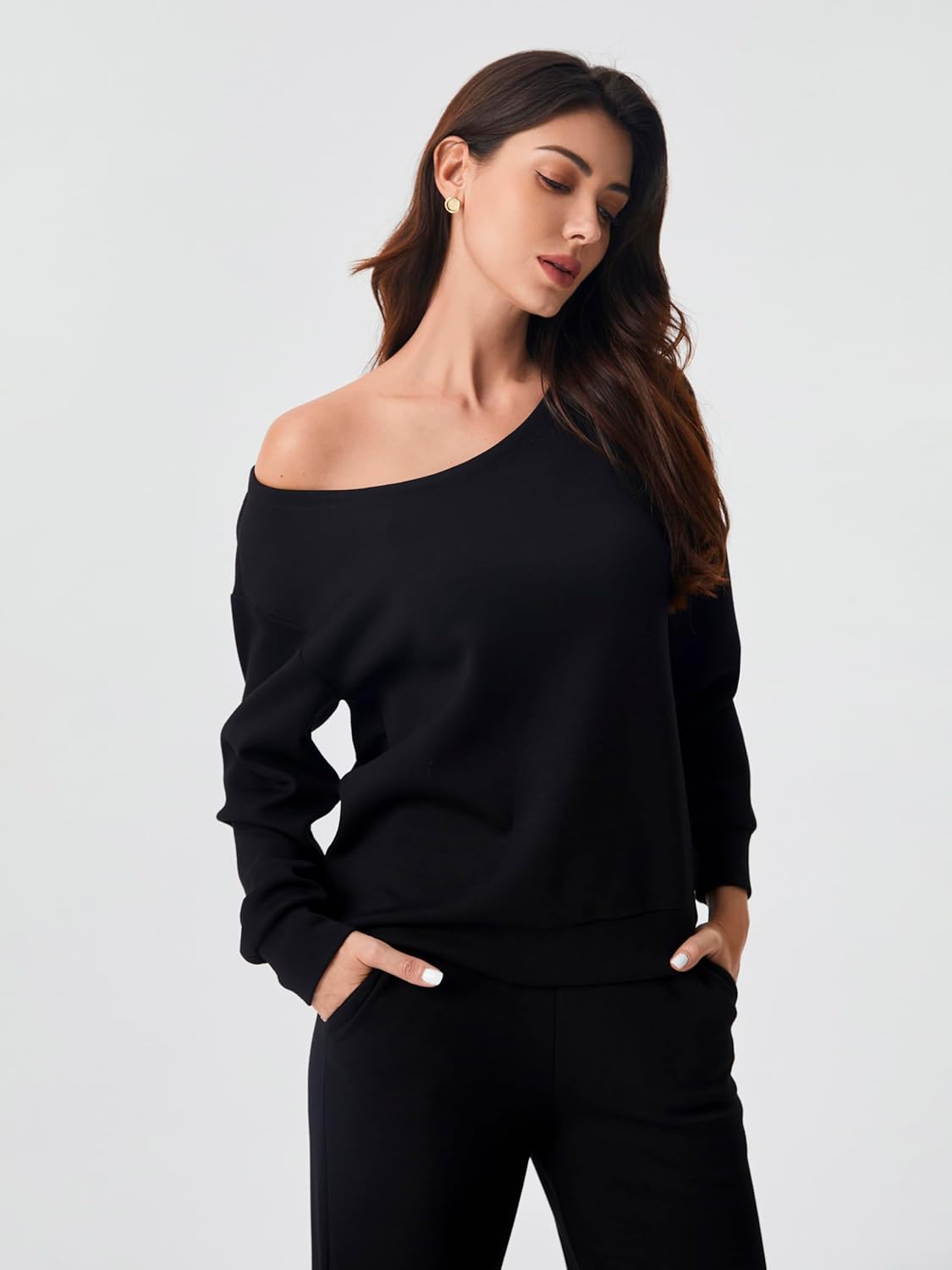 Versatile Neckline Styles: A round neck or sexy off-the-shoulder style for the top of AFITNE 2-piece outfit sets. The top sweatshirts feature long batwing sleeves and a pullover design, providing a chic and versatile appearance to suit your taste and give you comfort and fashion
