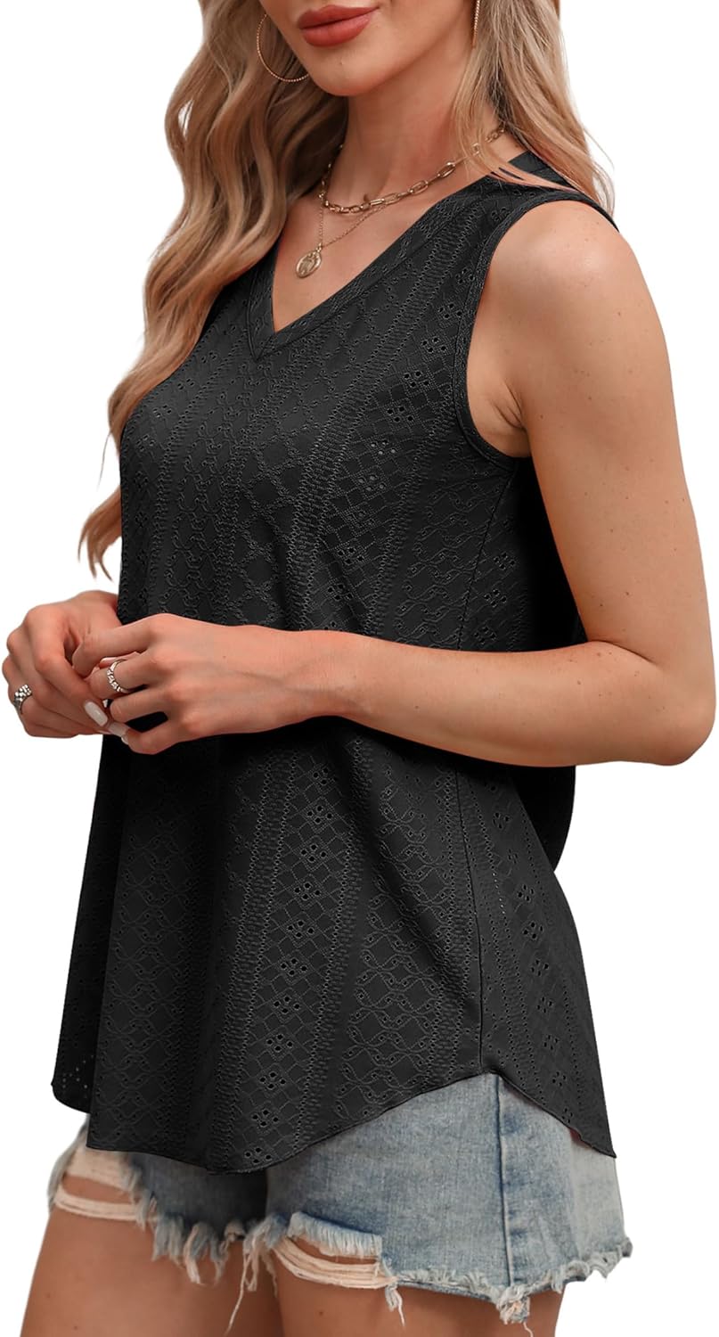 OFEEFAN Womens Tank Tops V Neck Sleeveless Flowy Loose Fit Basic Casual Summer Tops