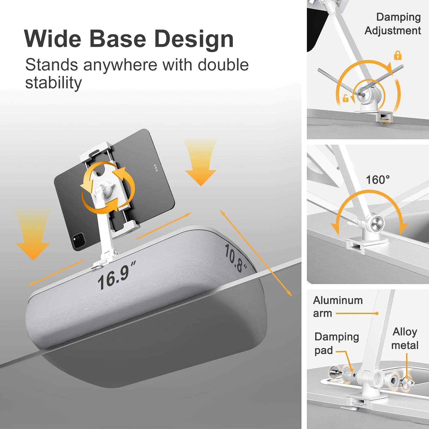 【Adjustable Flexibility】The detachable tablet arm features dual 180-degree adjustable joints with metal screws and a wrench for easy, precise position and stability adjustments.