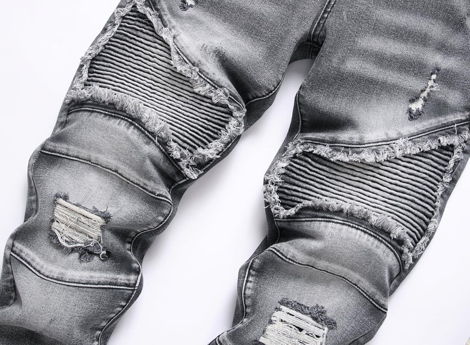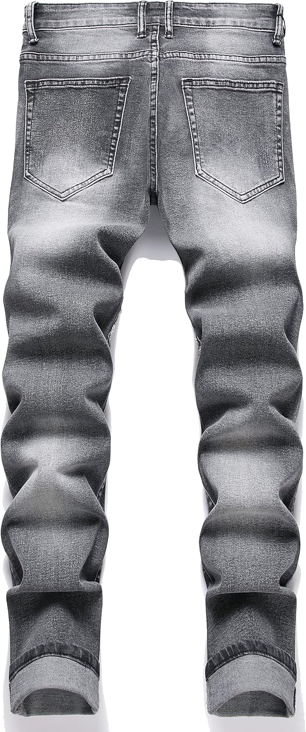 US SIZE.Fashionable Moto Biker Ripped Denim Jeans,Zipper deco. Looks cool and handsome in daily wear. Never out of fashion!