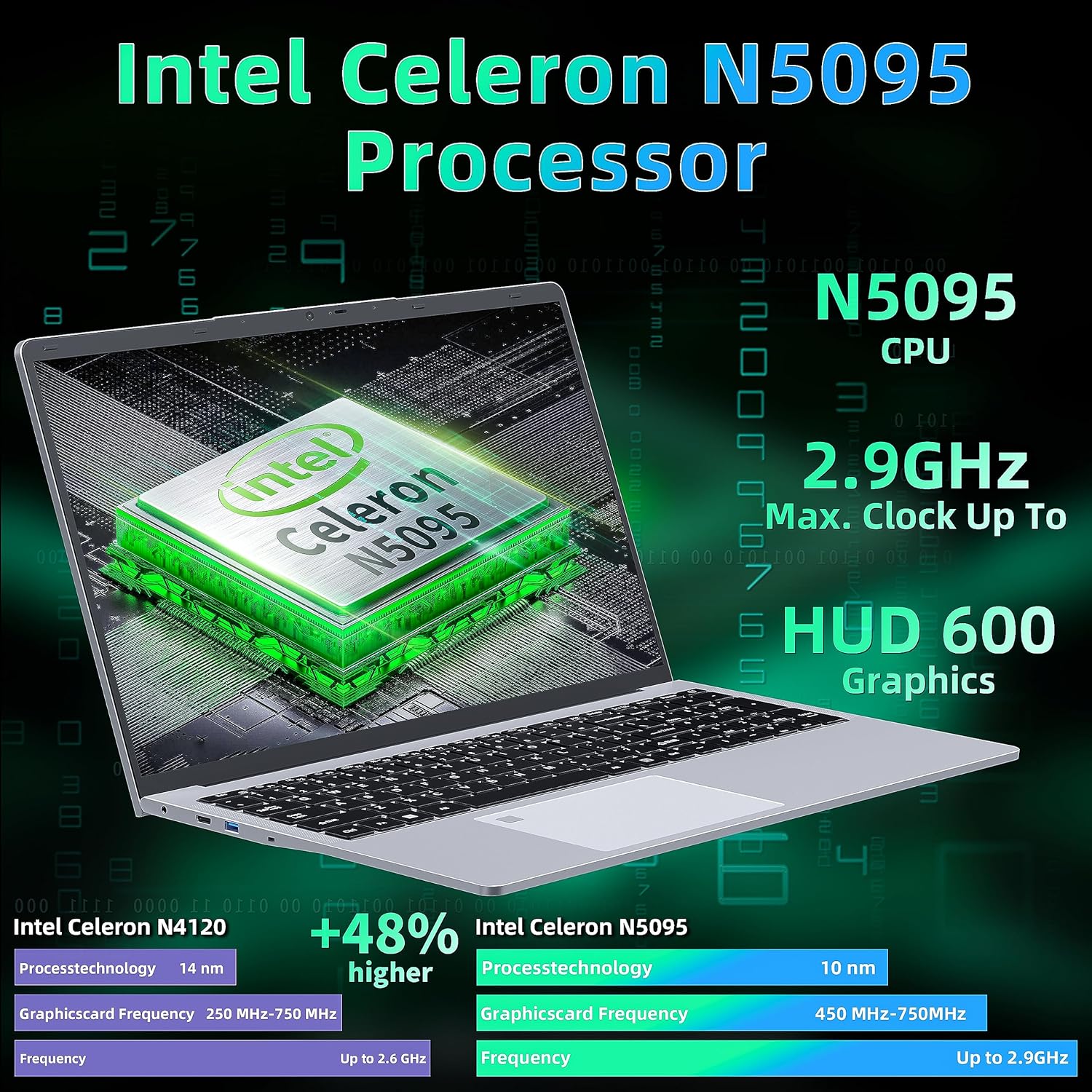 【?????????????????????? ???????? ??????????????????????: ????????-?????? ?????????? ?????????????? ?????????? ??????????????????! 】Experience next-level performance with the powerful Intel 11th-Gen Celeron N5095 Quad-core processor. With 4 threads and advanced 10nm technology, it delivers a base clock speed of 2.0GHz, surging to 2.9GHz for rapid multitasking. Seamlessly run a variety of programs, apps, and browser tabs with ease. Plus, our efficient fan cooling system maintains thermal stability, ensuring consistent peak performance even under heavy workloads.