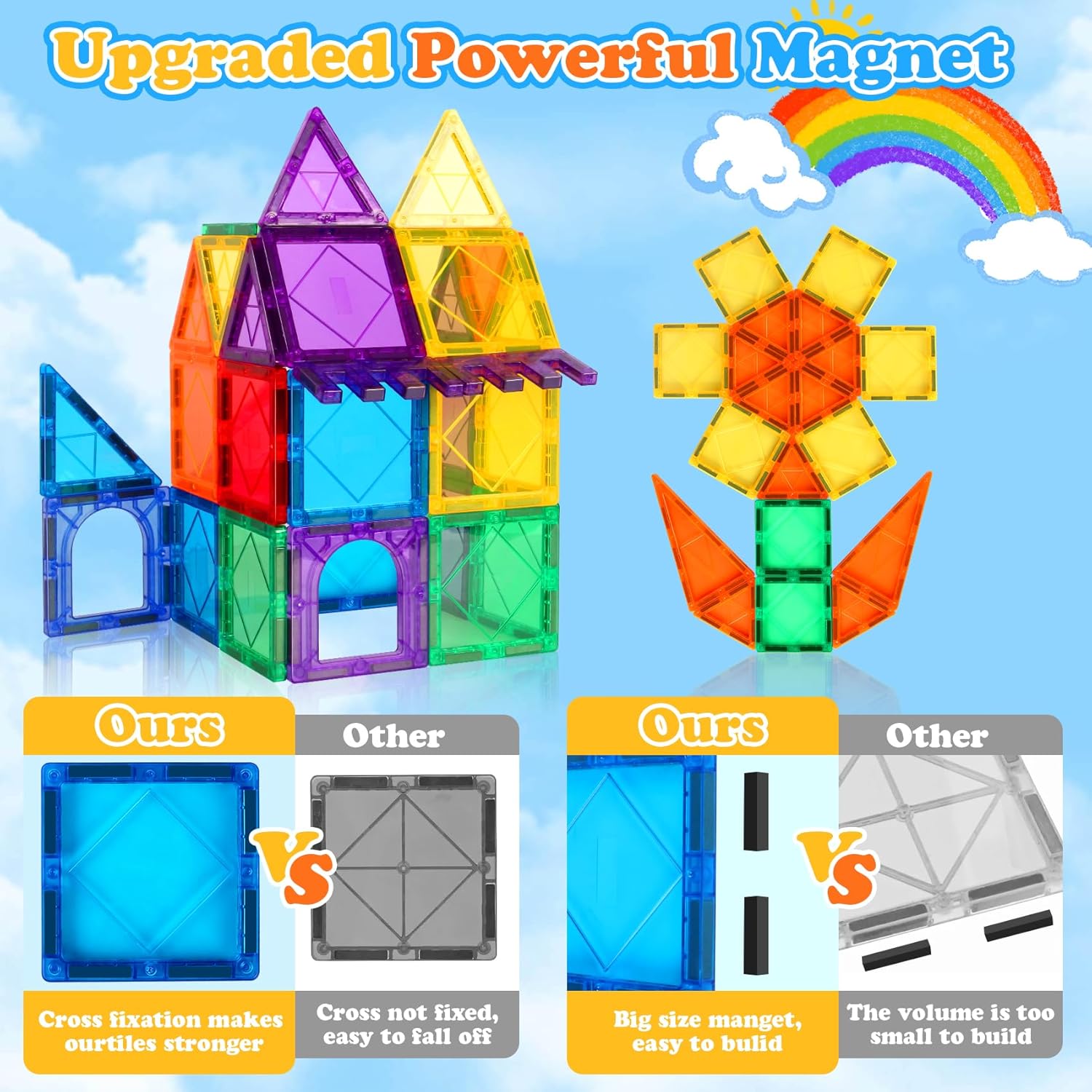 [Premium Quality] Mruikeny magnetic tiles for kids ages 4-8 with stronger magnets and high quality ABS materials for kids building toys. The safety priority with durable sturdy rivets & smooth edge surfaces. DIY entertaining construction toy created by senior designers for easy learning, teaching and happy childhood. Unique & novelty magnet toys for children 3 4 5 6 7 8+ years old.