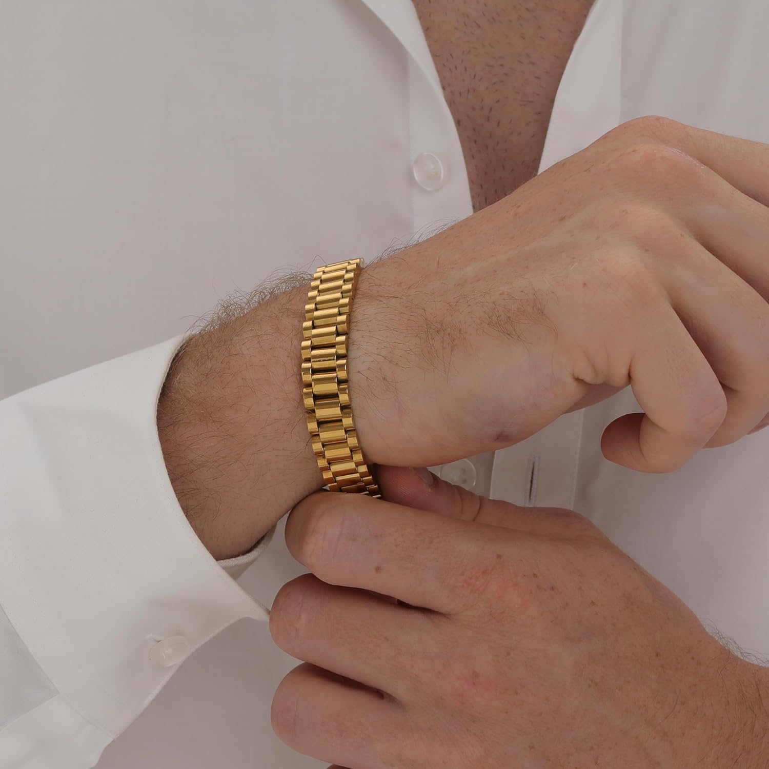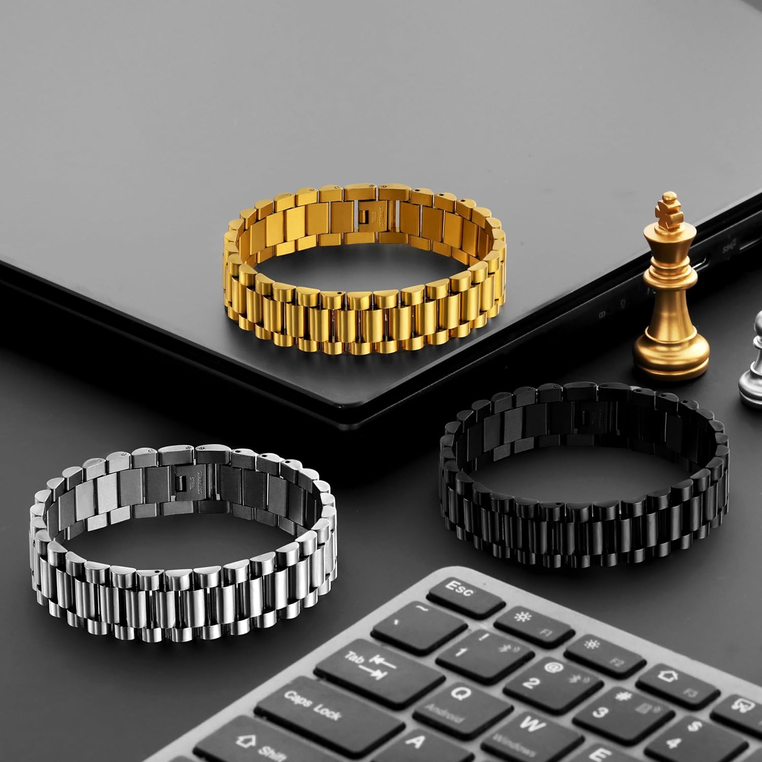 Bracelets Design: Our watch band bracelets are simple in design. This watch band inspired chunky chain bracelet is the ideal statement jewelry piece to elevate your look. Whether you wear it with formal attire for a business meeting or a casual look for a weekend, it shows off its unique charm