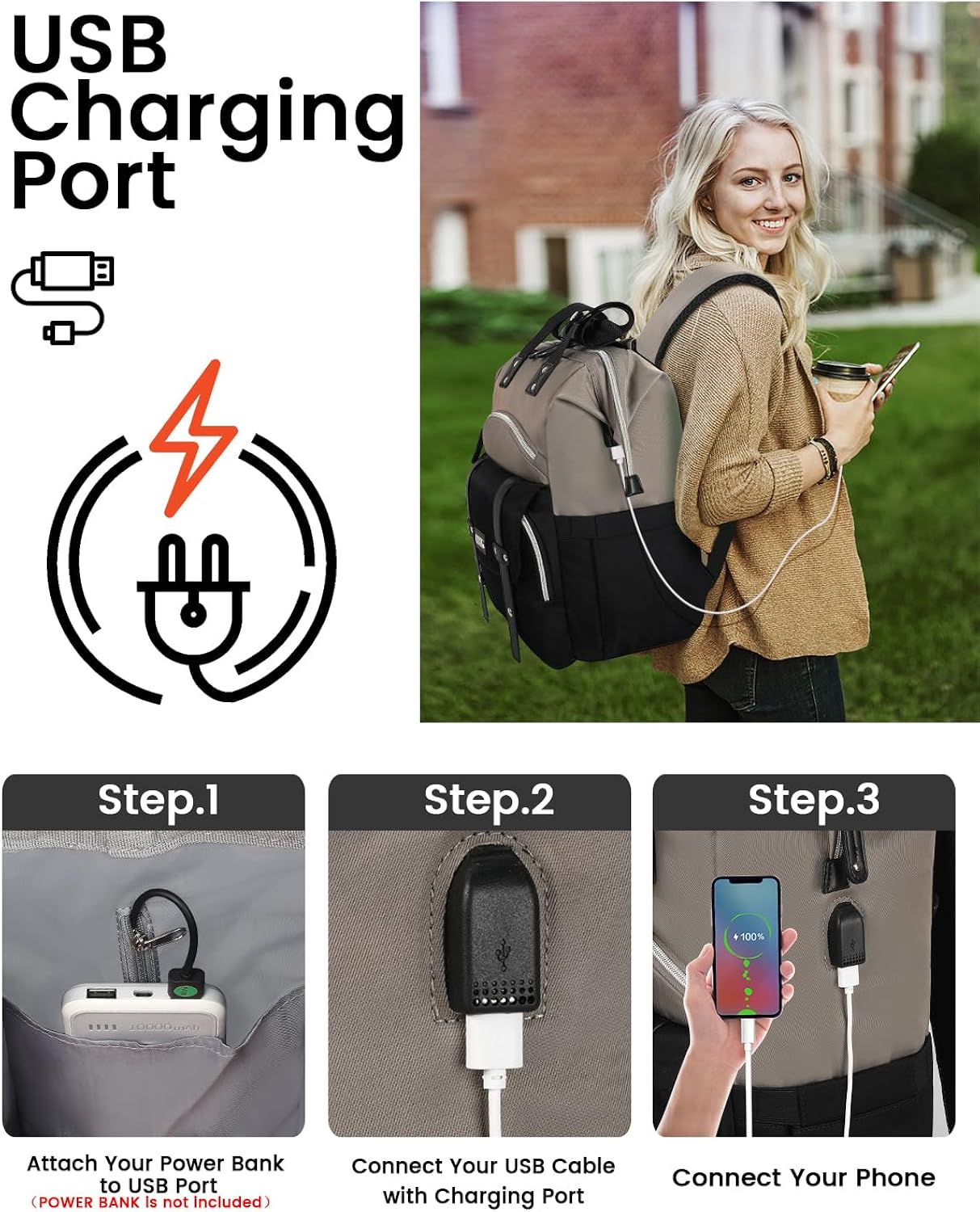 Personal Protection: Laptop backpack features padded laptop compartment which can provide good physical protection to your laptop. The anti-theft bag on the back is close to the USB charging port, so you can put the charging phone in it while walking.RFID protection pocket protects your personal information from being stolen by a RFID scanner (e.g. credit cards, passports, and driver's license)
