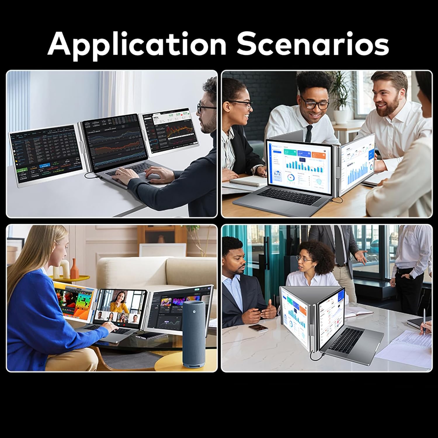 Boost Productivity by 300%: The YXK triple screen laptop extender allows users to manage multiple tasks simultaneously. With full 235° rotation on the left and 180° on the right, it enables seamless meeting sharing, content review, and enhanced work efficiency with multi-screen displays.