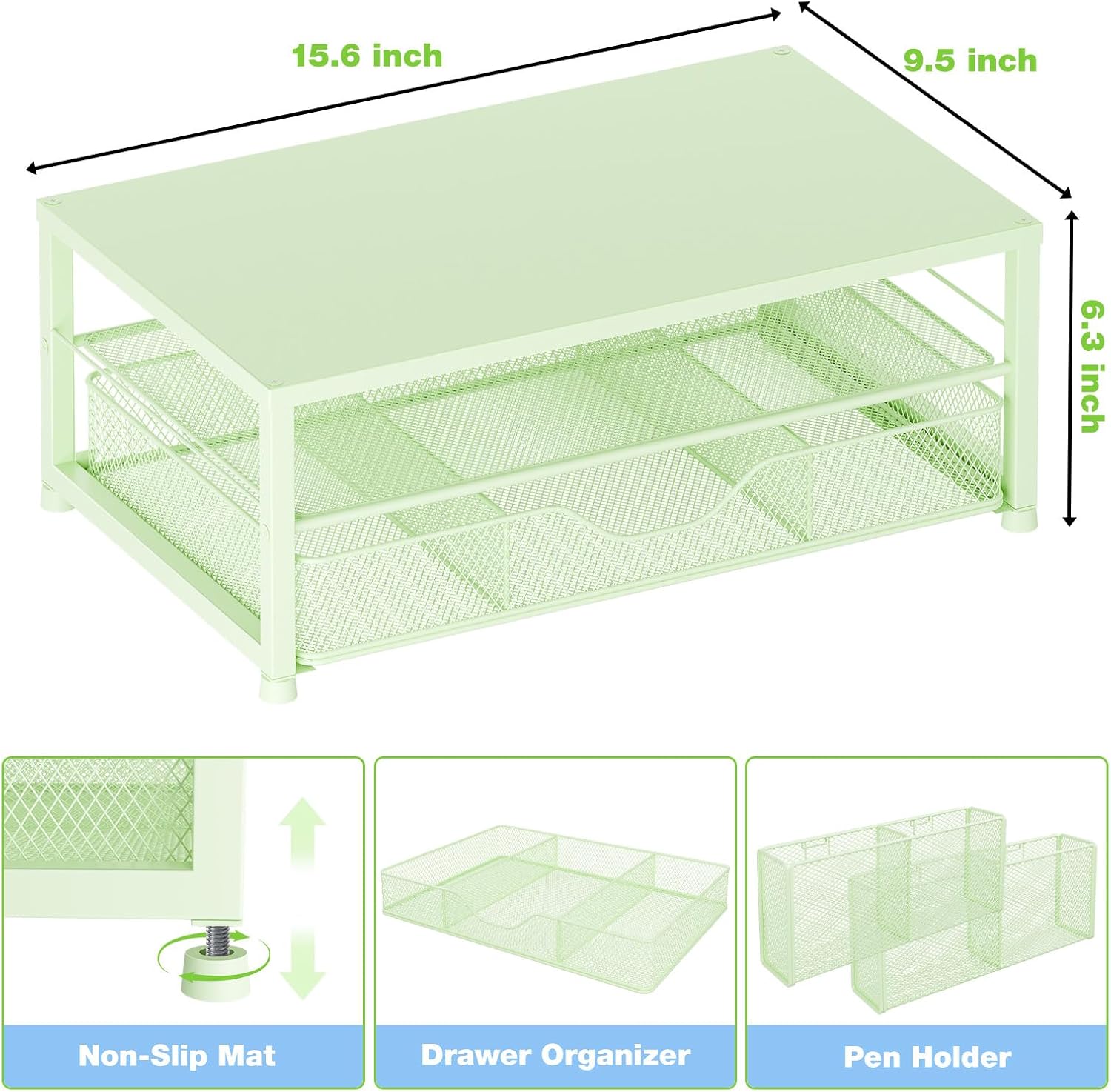 Save Space:This 2-Tier monitor stand with drawer and 2 hanging pen holders provides ample storage space to keep your office supplies and office desk accessories neatly organized and easily accessible, keeping your workspace tidy and improving your sense of well-being