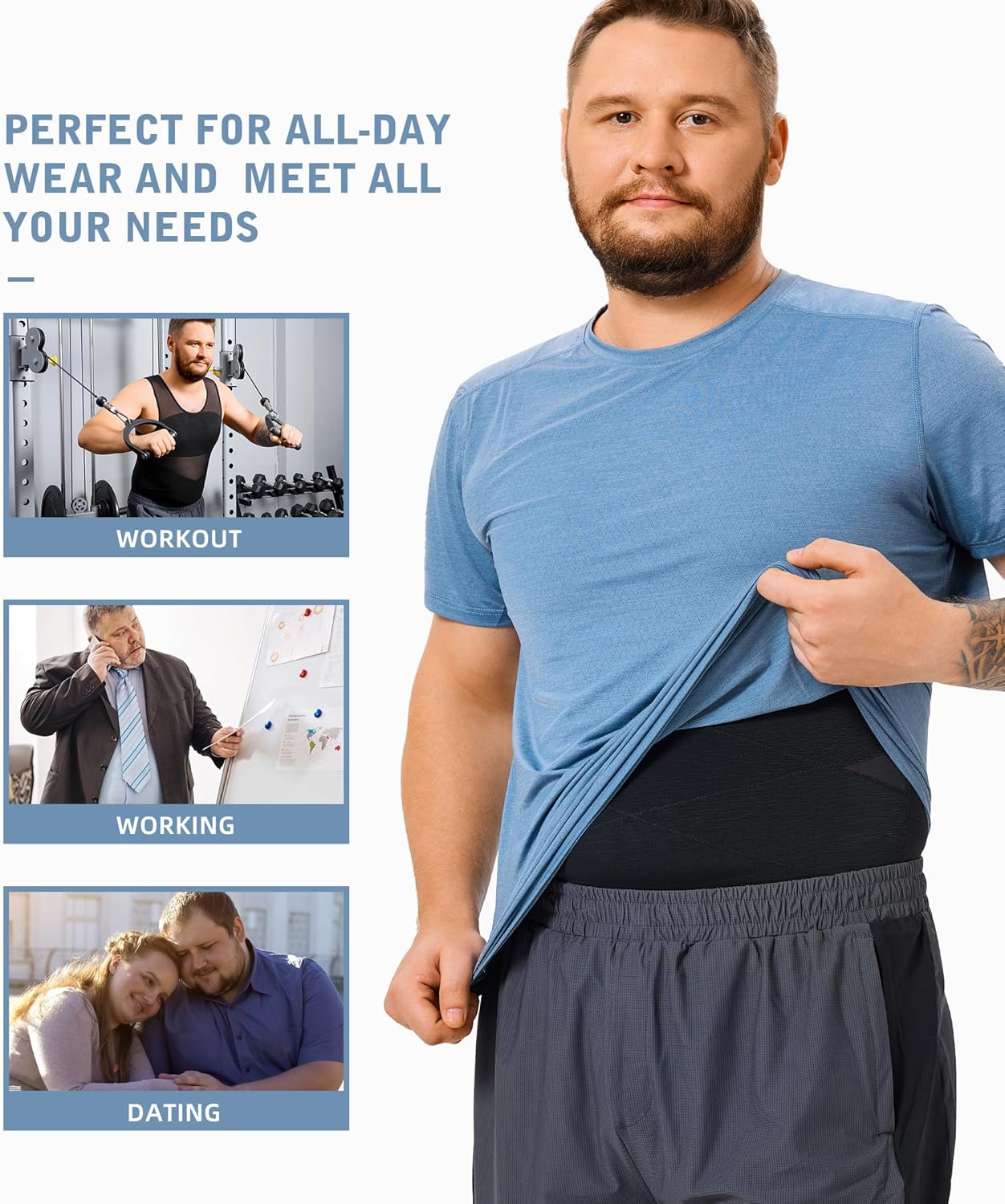 VERSATILE FOR ANY OCCASION – Crafted from highly elastic and breathable material, this compression undershirts for men offers comfort for extended wear. It's perfect for the gym, running, cycling, and other activities that compress the abdomen, while also being suitable for social events, dates, weddings, and work. A great choice for men who aspire to achieve a sleek and toned look!