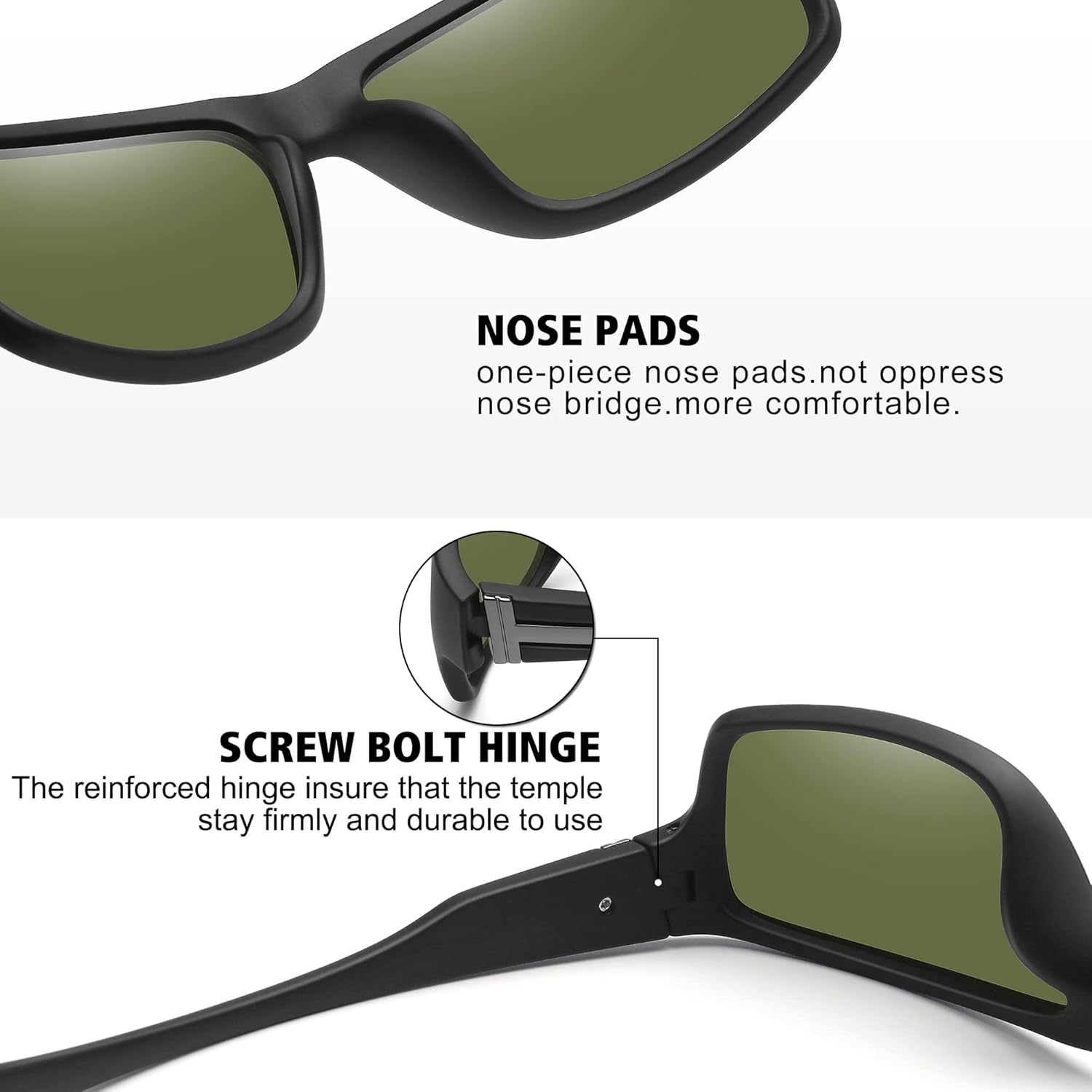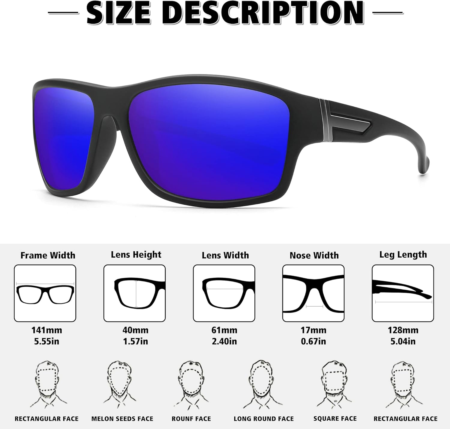 【POLARIZED LENS】- 99% UV400 protection coating, blocks 99% harmful UVA & UVB Rays. Restore true color, eliminate reflected light and scattered light,make the scenery more clear and soft and protect eyes perfectly. Polycarbonate lens are impact, scratch resistant and unbreakable.