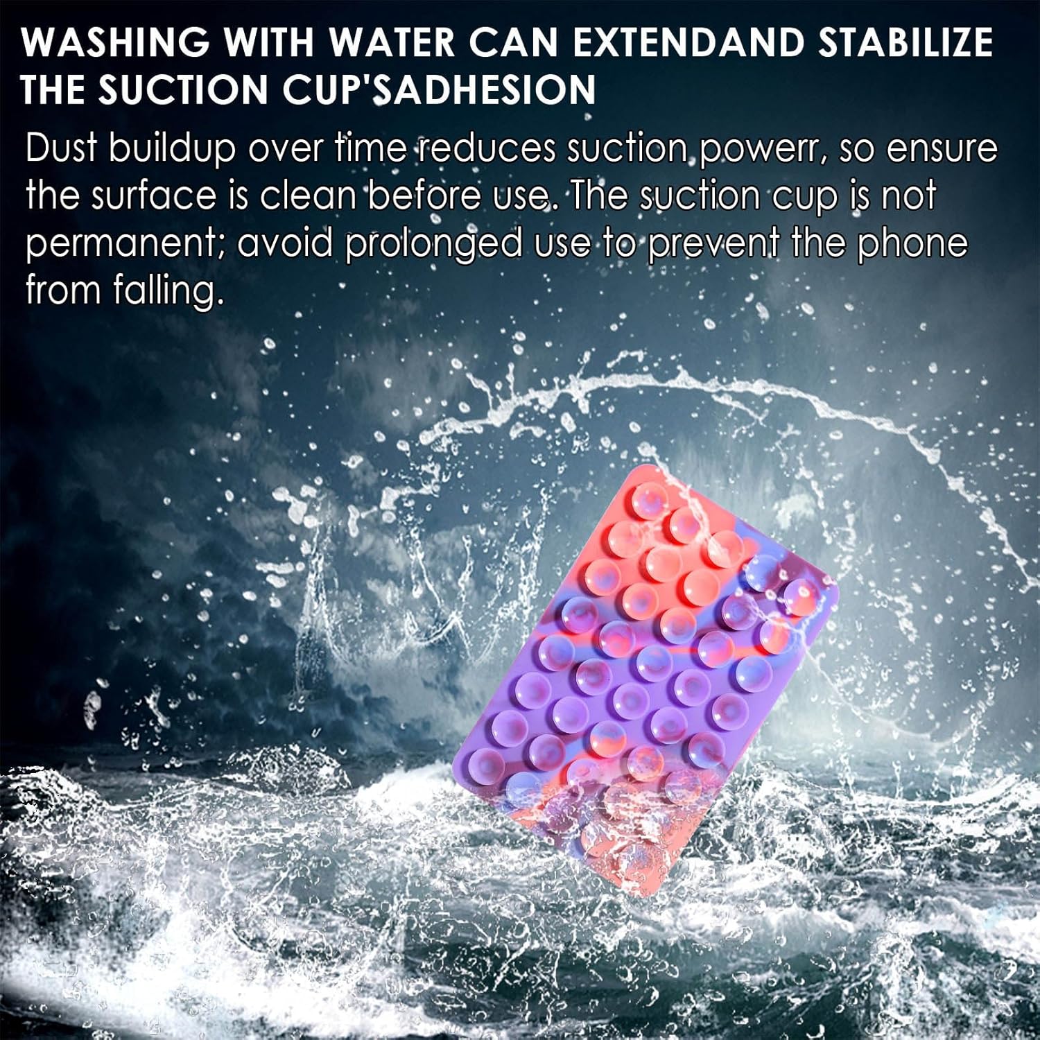 Usage Tip: The suction strength depends on the smoothness of the surface. For optimal adhesion, press the phone every 30 minutes to prevent slipping and maintain grip