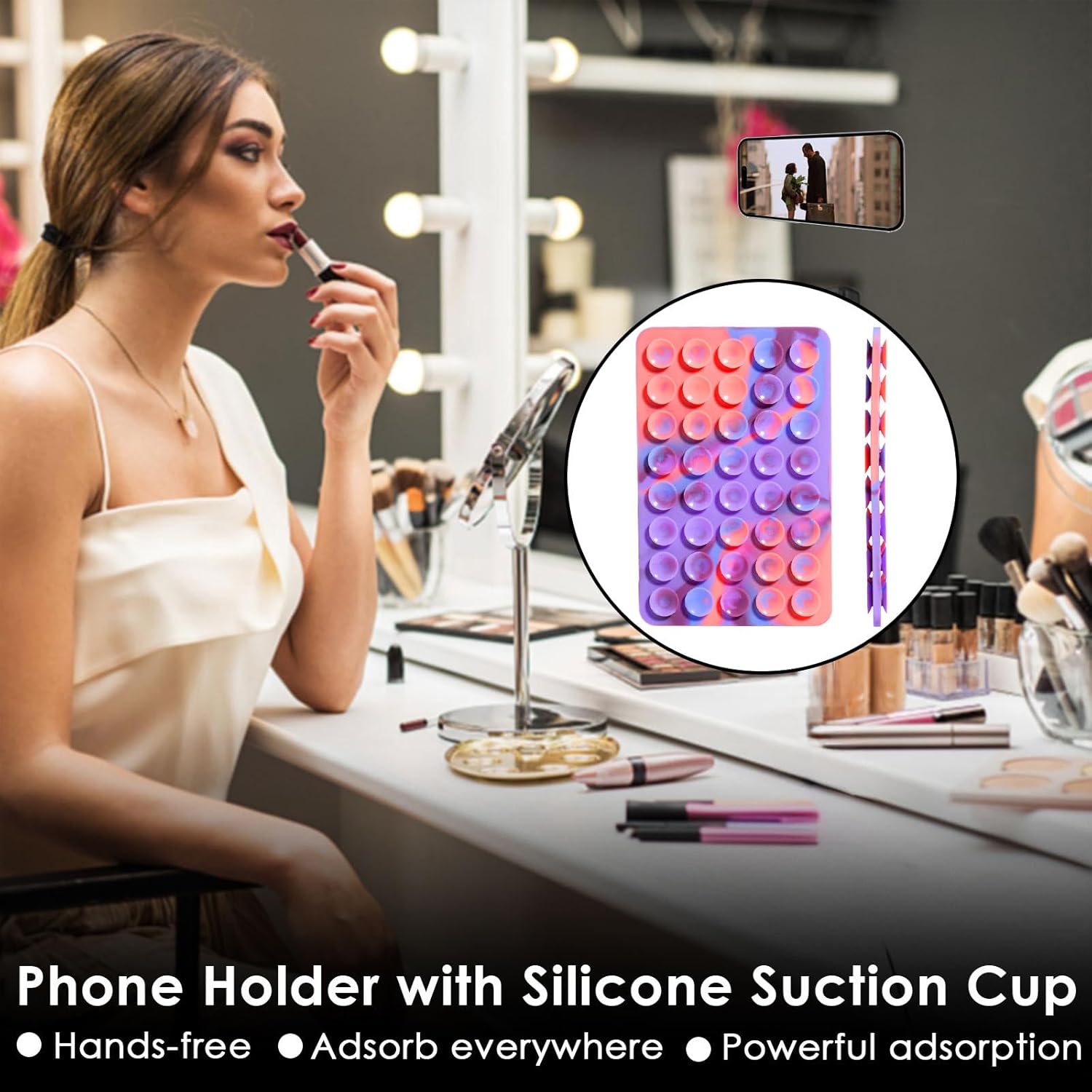 Widely Used: The silicone suction phone holder attaches securely to any clean, flat surface, including vertical ones. Perfect for kitchens, gyms, offices, bathrooms, and more. Great for photos, videos, calls, or stress relief, it provides a hands-free solution in any weather, year-round
