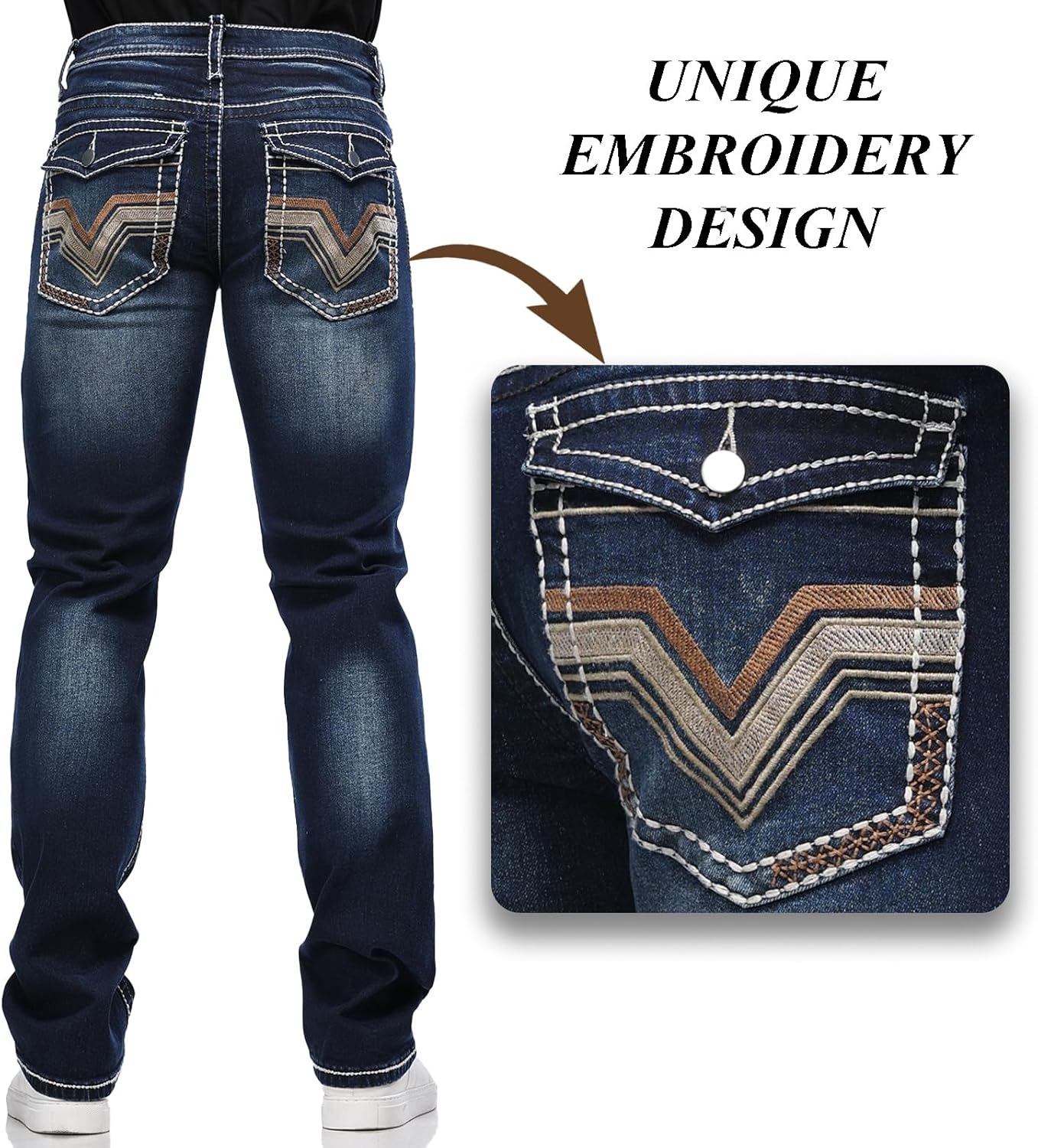 【UNIQUE EMBROIDERY】Vintage-inspired embroidery adds distinctive character and visual appeal to these work pants for men, helping you stand out from the crowd and showcase your unique taste.