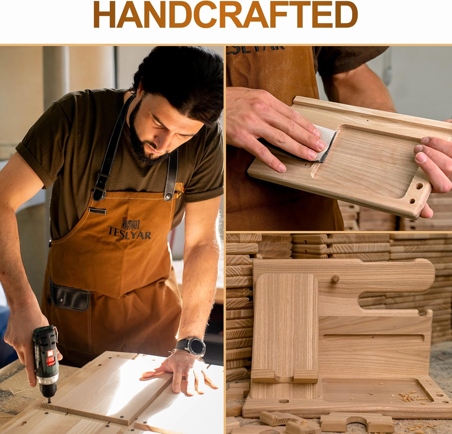 TESLYAR Wood Phone Docking Station with Drawer - Nightstand Organizer - Desk Organizer for Husband - Birthday Gifts for Me...