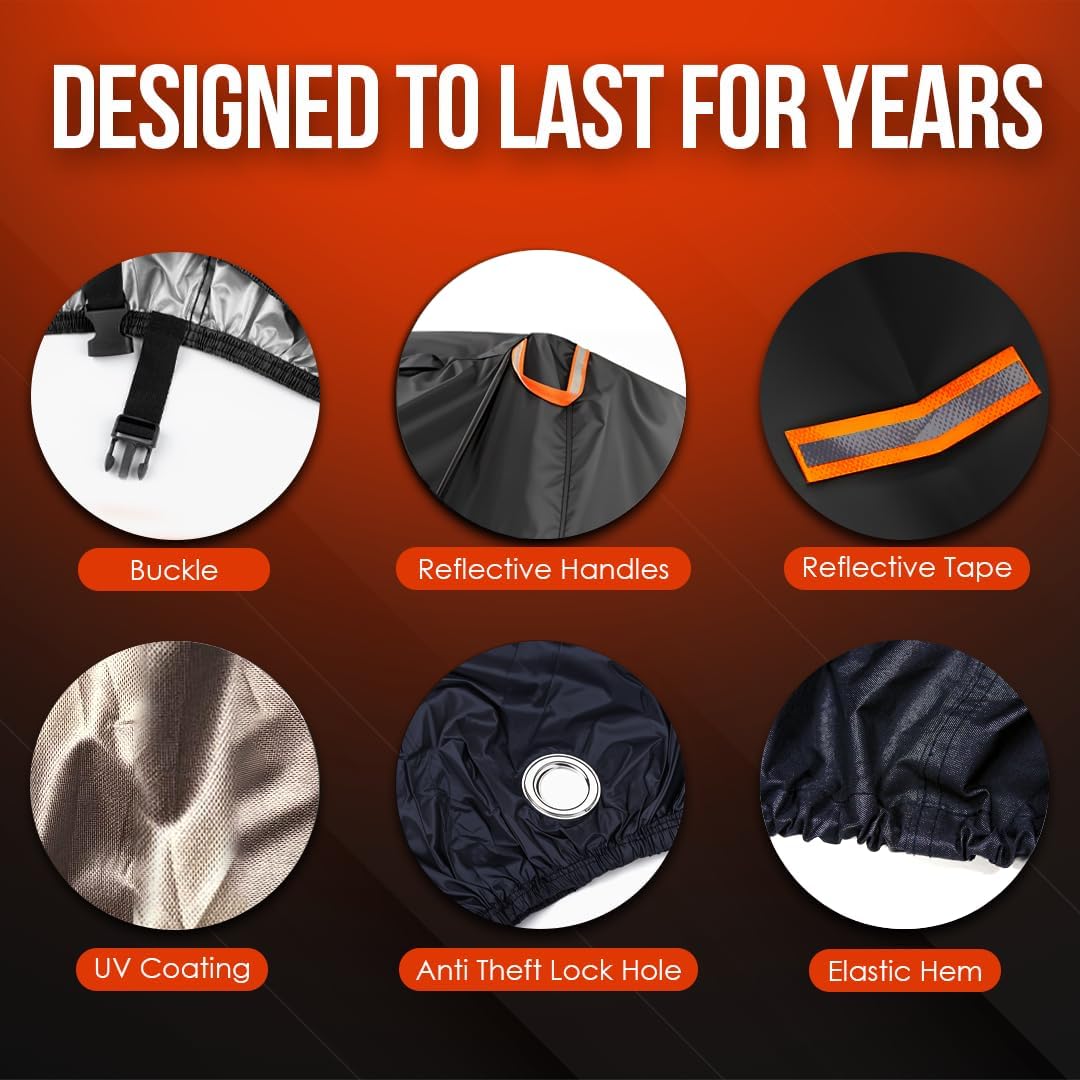 Enhanced Safety Features: Our cover features 2 reflective handles and a reflective strip, providing maximum visibility at night to avoid accidents. The handles also make removal a breeze—practical and secure.