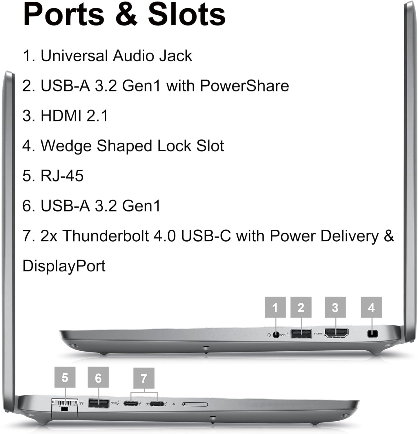 Intel Wi-Fi 6E AX211, 11ax 2x2 + Bluetooth wireless card; 2 Thunderbolt 4 (40 Gbps) with DisplayPort Alt Mode/USB Type-C/USB4/Power Deli-very, 1 USB 3.2 Gen 1 port with PowerShare, 1 USB 3.2 Gen 1 port, 1 HDMI 2.1 port, 1 universal audio port, 1 RJ45 Ethernet port; 1 Smart card reader slot.