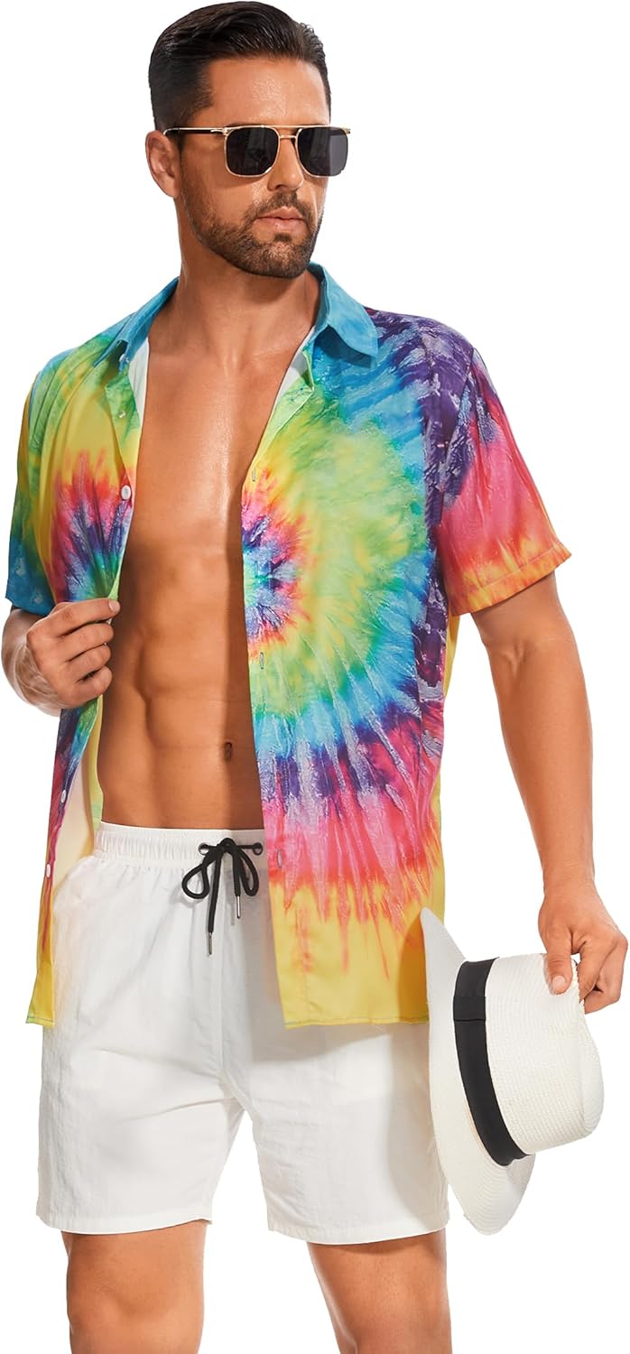 Breathable Fabric: Our short sleeve vintage tie dye shirts for men are made from breathable and soft touch fashion floral printed dress shirt fabric, making these outfits comfortable. Our graphic shirts for men can also be used as clothing for womens trendy outfit, and mens tee shirts with eye-catching colors