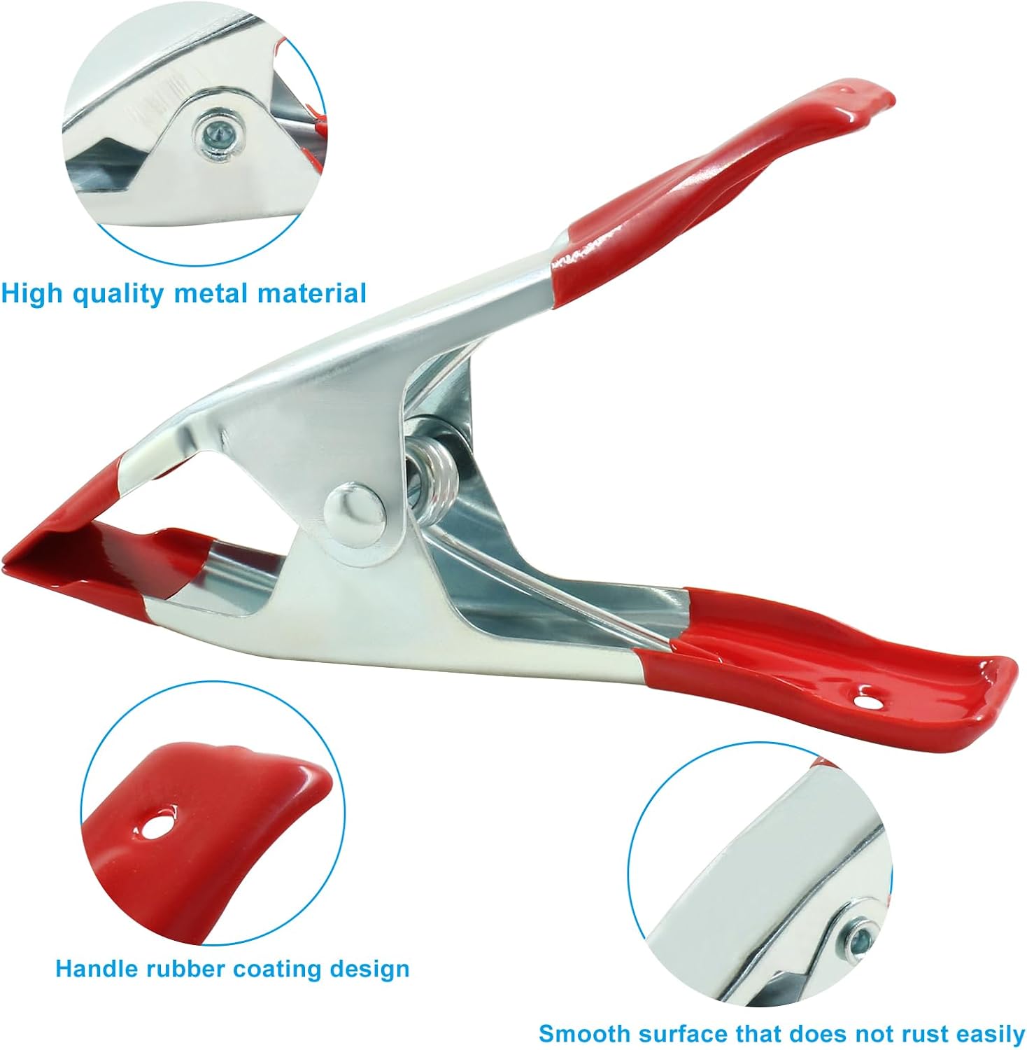 [Rubber-coated Design] :The rubber-coated design of the spring clamp's handle and chuck keeps the surface away from damage from damage and has a antiskid effect.