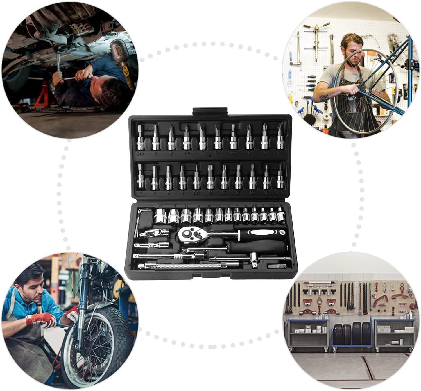 Socket Wrench Set, Automobile Motorcycle Repair Tool Box Car Tool Kit Small Socket Set with Box For Automotive Repair (46p...