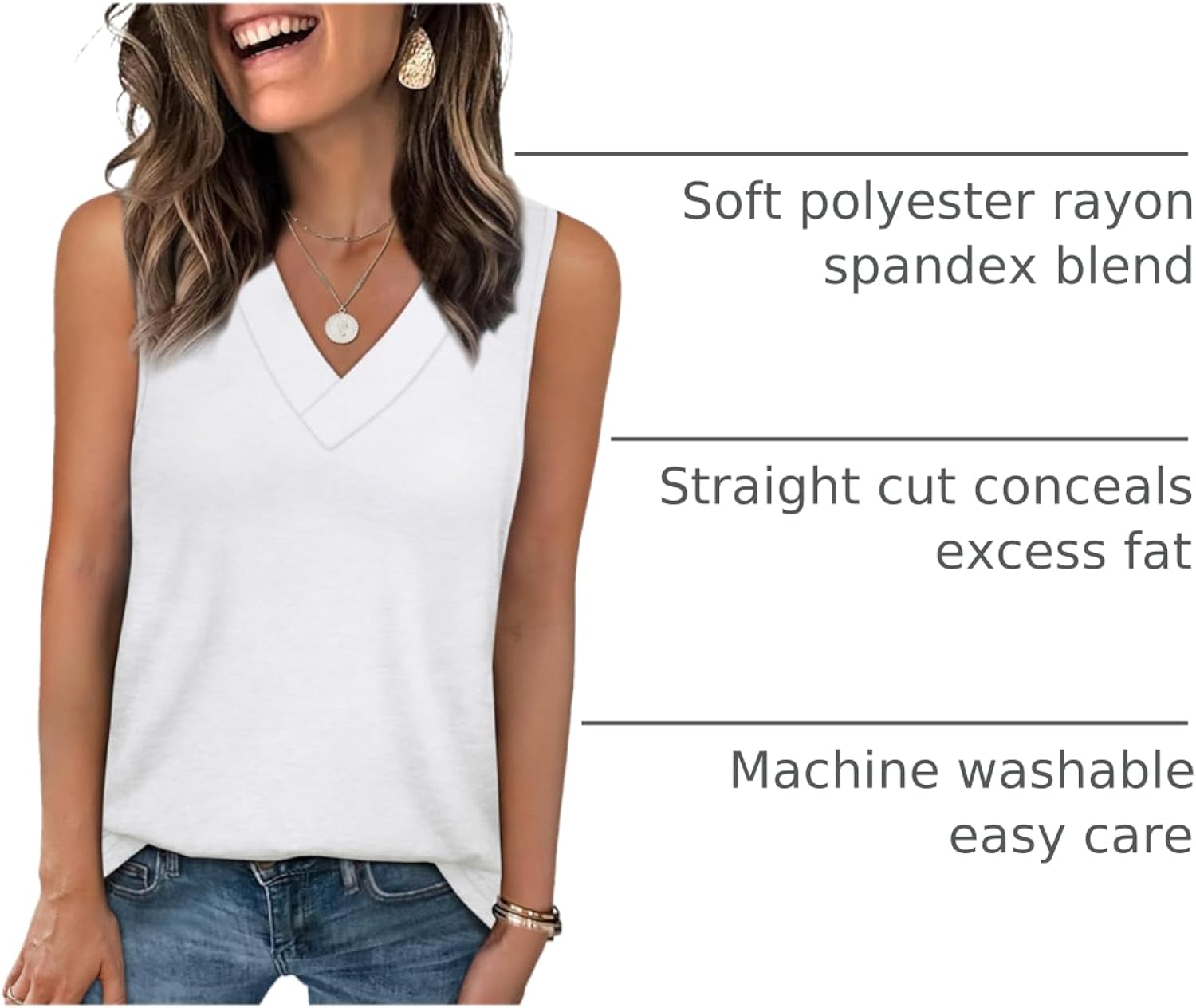 ★Features: Womens summer tops,sleeveless tops for women,the stylish v-neck design accentuates the neckline, while the straight cut effortlessly conceals excess fat. It exudes a chic, casual vibe, making it ideal for summer days