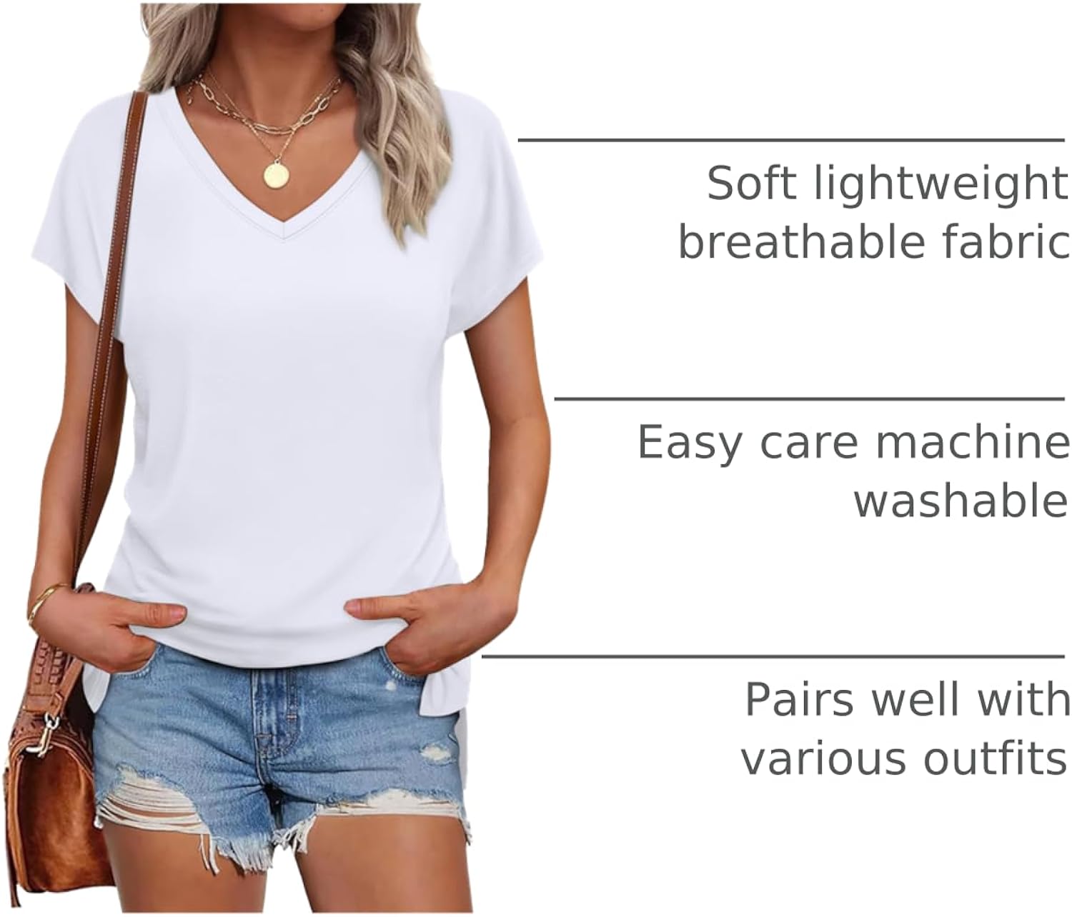 Feature: Womens summer tops,v neck t shirts for women,cap sleeve tops for women,stylish split hem design,solid color t-shirts are classic and a must-have in everyone's wardrobe!