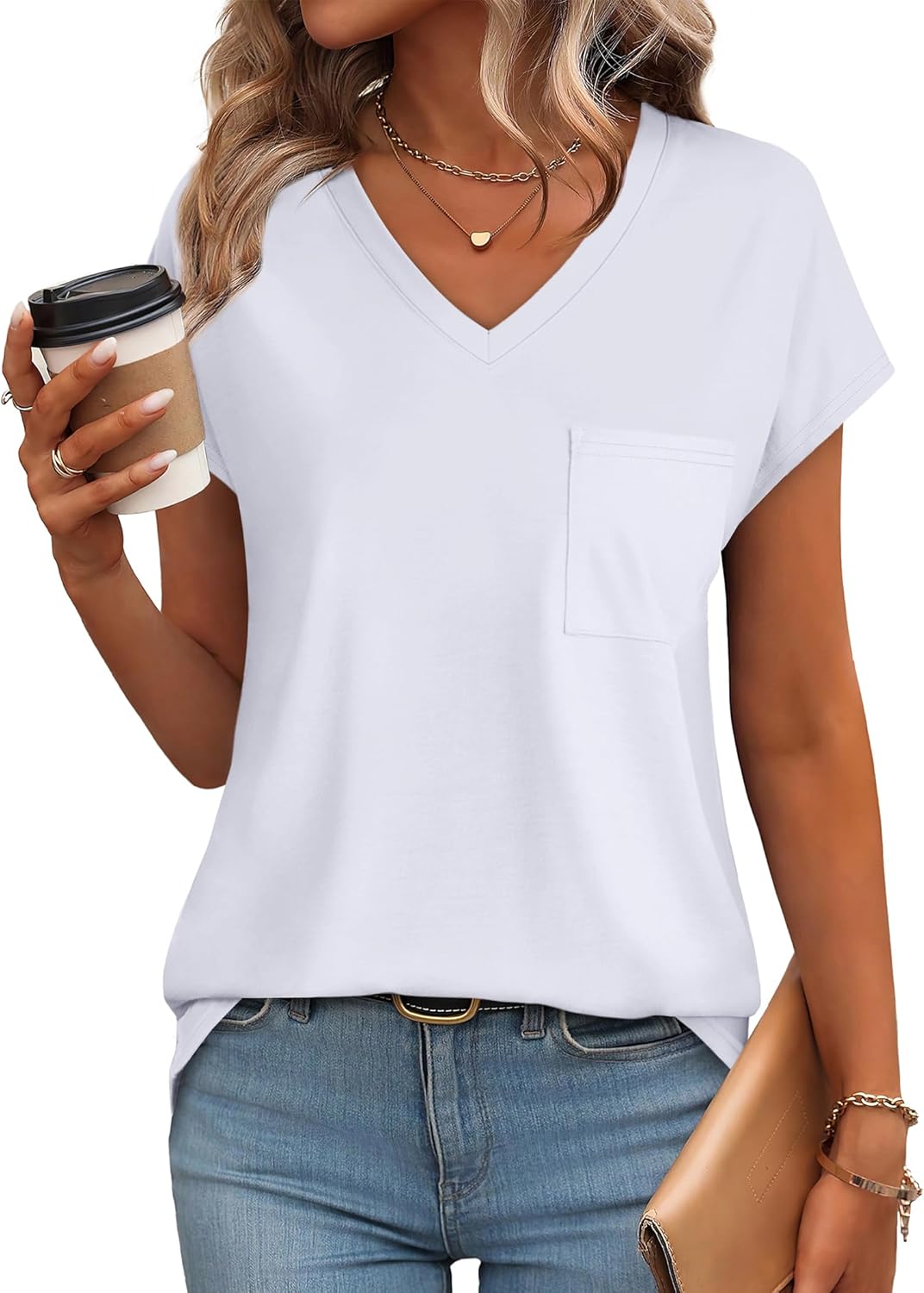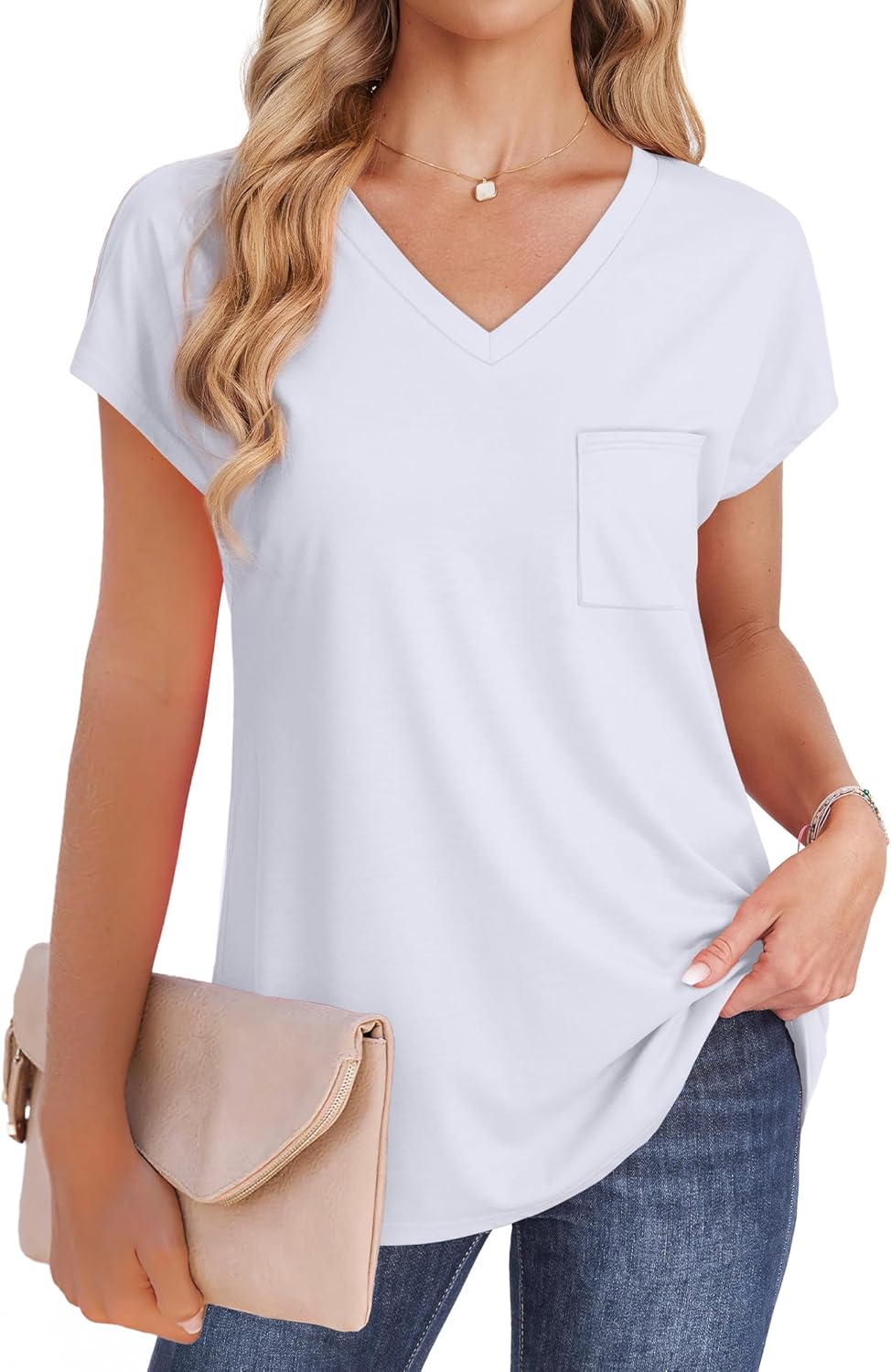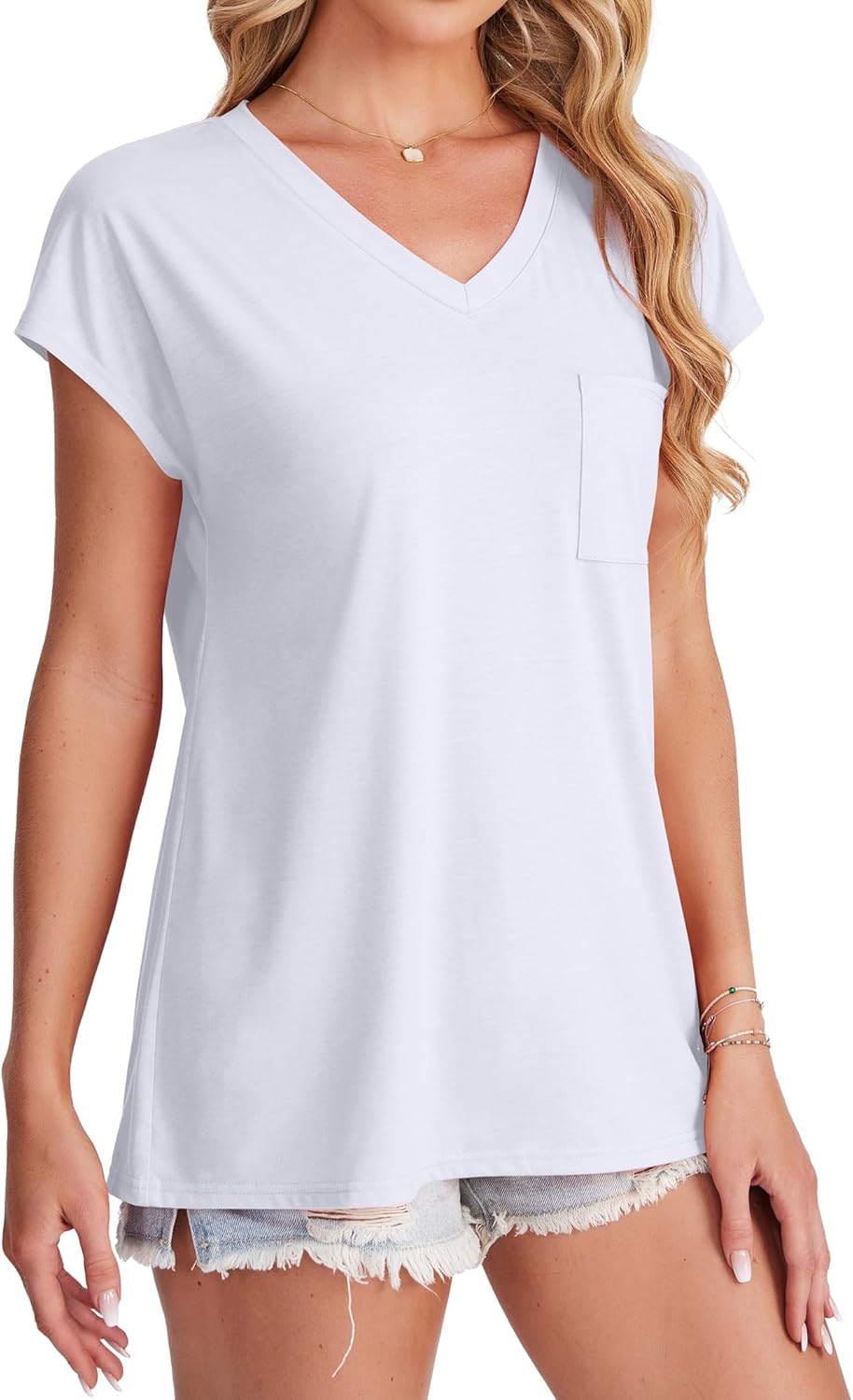✦Design: Casual V Neck T Shirts with Pocket, Short Sleeve Tops Loose Fit, Plain Basic Tees, Solid Color. The cap sleeves enhance the silhouette of the shirt, making it look dressier than a plain t-shirt.