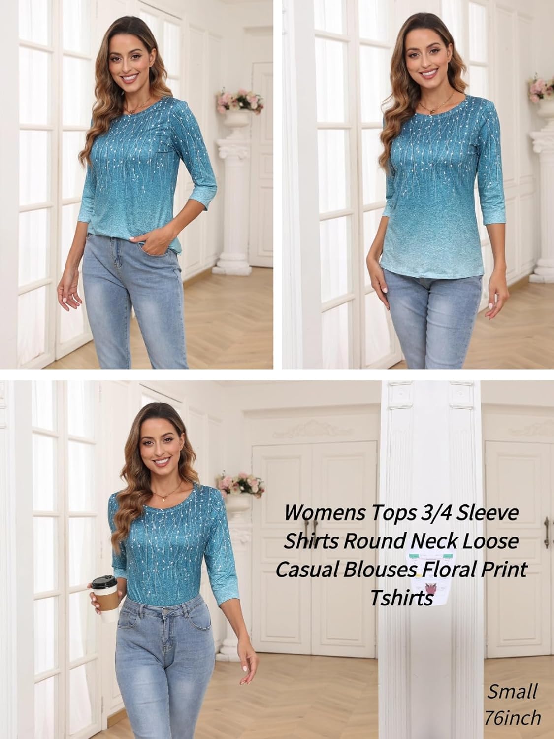 Soft comfy material: 3/4 length sleeve womens tops is made of 95%Polyester 5%Spandex, which is stretchy, breathable and comfortable