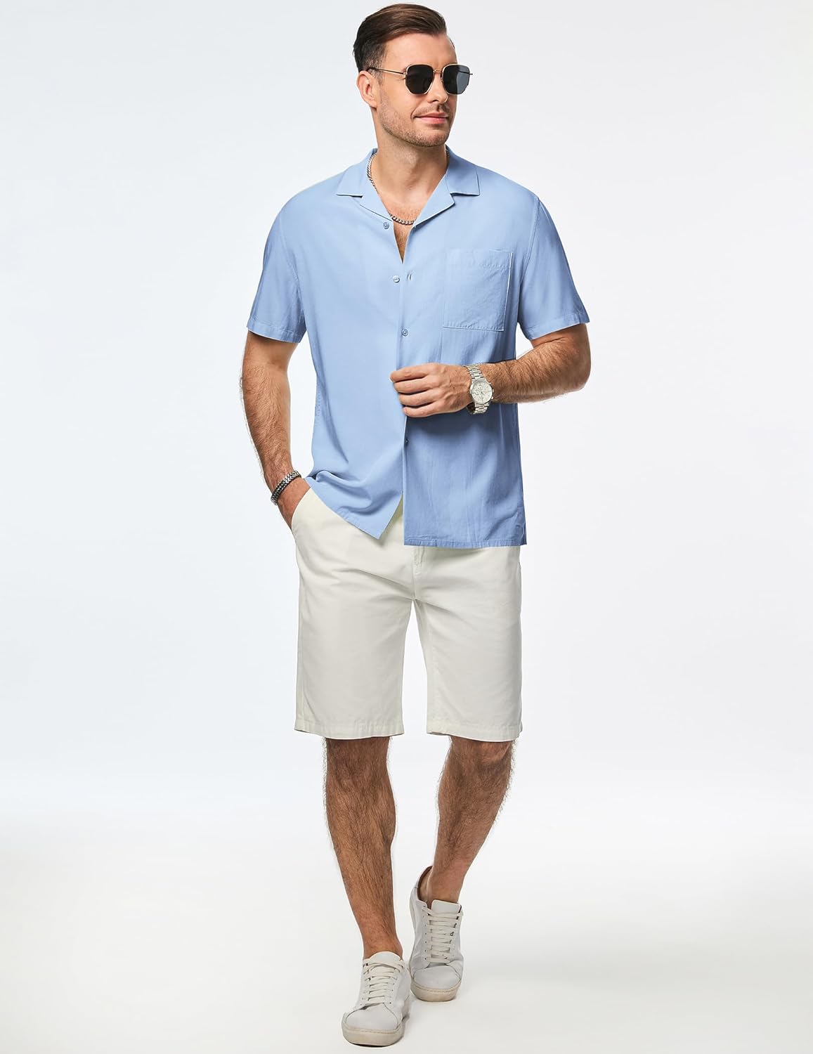 Stylish Cuban Collar: Featuring a classic Cuban collar design, button-down closure, and patch pocket, our short sleeve shirts exude a timeless and trendy appeal. The casual beach style design will elevate your summer wardrobe with its effortless elegance