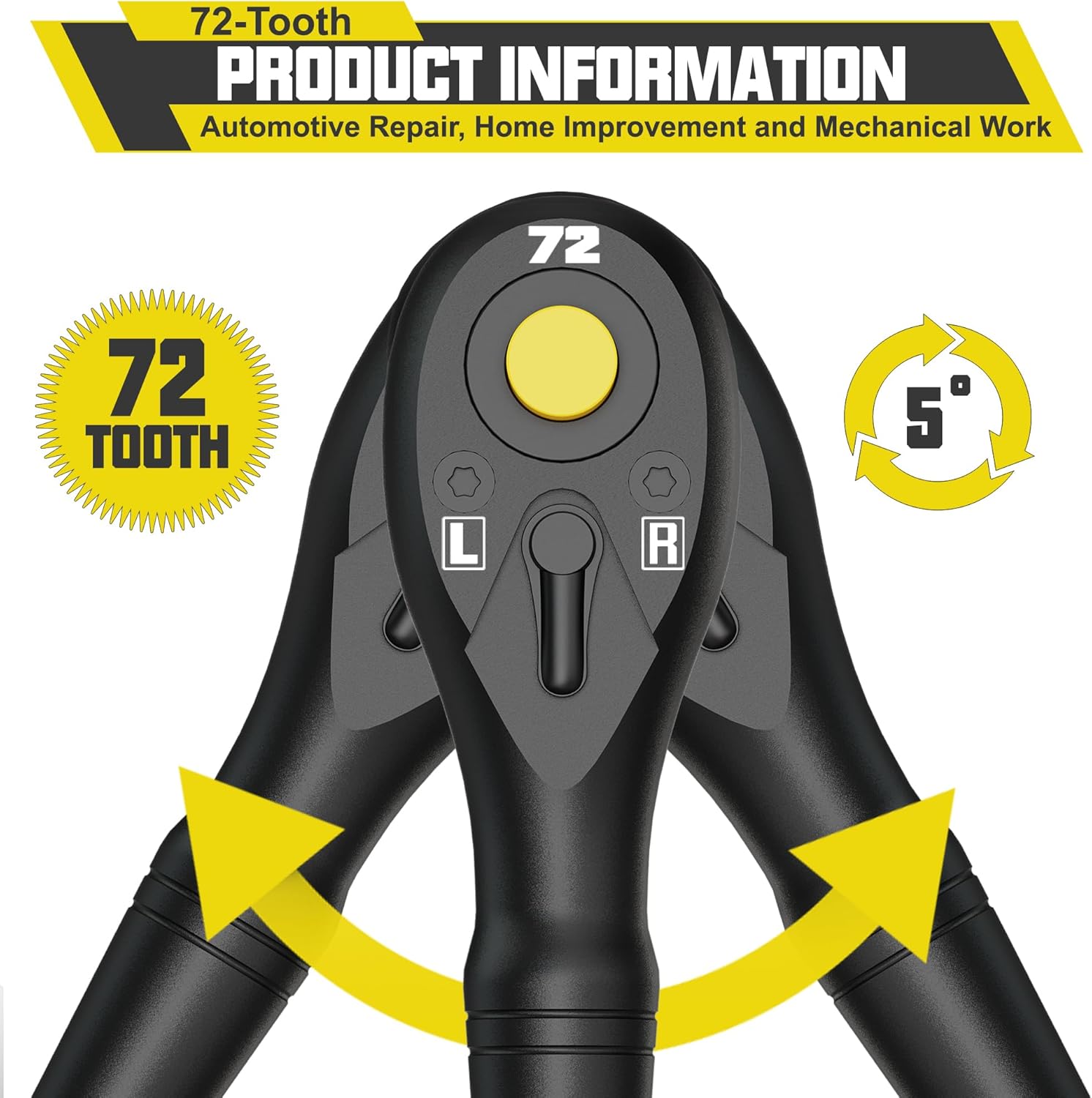 This ratchet uses advanced laser technology and bright color button design, which not only improves the aesthetics of the tool, but also greatly improves work efficiency and effectively prevents misoperation