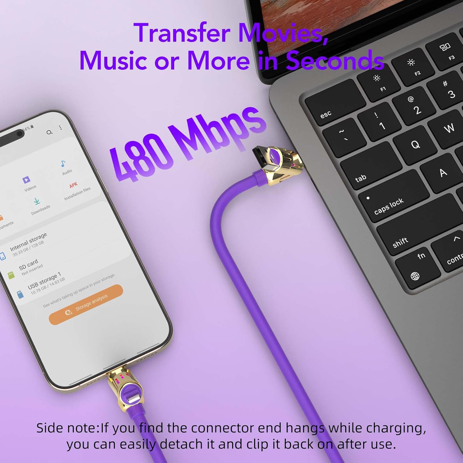 Fast Syncing & Stable Transfer : Don’t just charge—sync, backup, and transfer like a pro. With USB 2.0 data transfer speeds of up to 480Mbps, you can move 1200+ songs or thousands of photos per minute. Whether it’s work files, music, or videos, your data is in good hands.