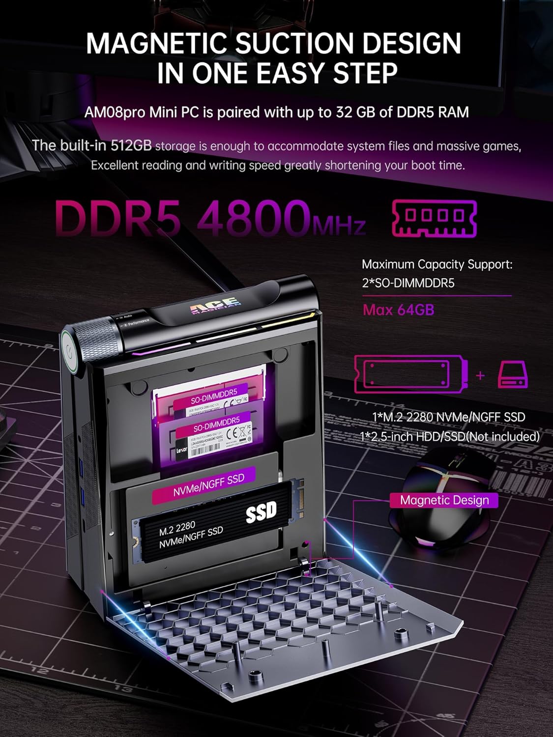 【Premium Gaming Mini PC】Mini computers AMD Ryzen 9 6900HX Processor(8C/16T, 16MB cache, up to 4.9 GHz max boost) based on the highly-reputed Zen 3+ Architecture and 6 nm technology. Compared with AMD ryzen 5/ryzen 7/core i5/core i7, ACE mini pc ryzen 9 will be more powerful, providing faster speed and efficiency. It implies that enthusiasts can utilize the power of the best possible gaming and creative performance in a single chip. Play your favorite pc games like APEX, CSGO, PUBG, COD, and more with ease!