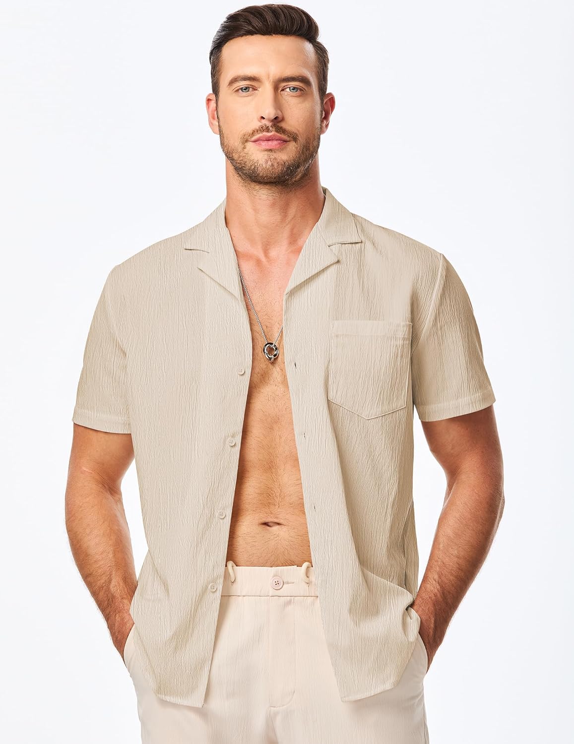 Cuban Guayabera Design:The JMIERR men's Guayabera shirt features short sleeves, a wide collar, button closure, and a loose fit design. We offer solid color shirts in a variety of colors, with a chest pocket for convenient storage of small items. The classic wide collar and button closure front design, along with the unique Cuban design, make this shirt even more stylish and timeless.