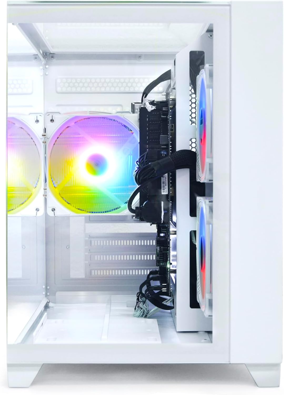 Design & Extras: The PC is equipped with 5× RGB fans and lighting effects. These lights can be set according to the user's preference, adding a splash of colour to the PC and enhancing the overall visual effect. The chassis is designed with glass panel on three sides, which allows users to visualise the internal hardware layout and lighting effects. At the same time, the glass side panels also ensure good heat dissipation performance, ensuring that the hardware remains stable under prolonged operation Applicable Scenarios