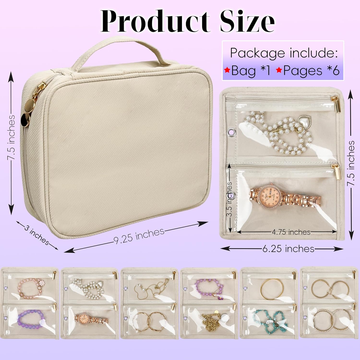 【PORTABLE TRAVEL ESSENTIAL】This travel jewelry bag is spacious enough for a 7-day trip or daily use. Size:9*7.25*3 inches.With a secure zipper closure, your jewelry will stay in place and won't get lost. Its compact size fits in any bag, making it versatile for all types of travel. Whether for a weekend trip or a business journey, this jewelry organizer bag is a must-have to keep your jewelries safe.