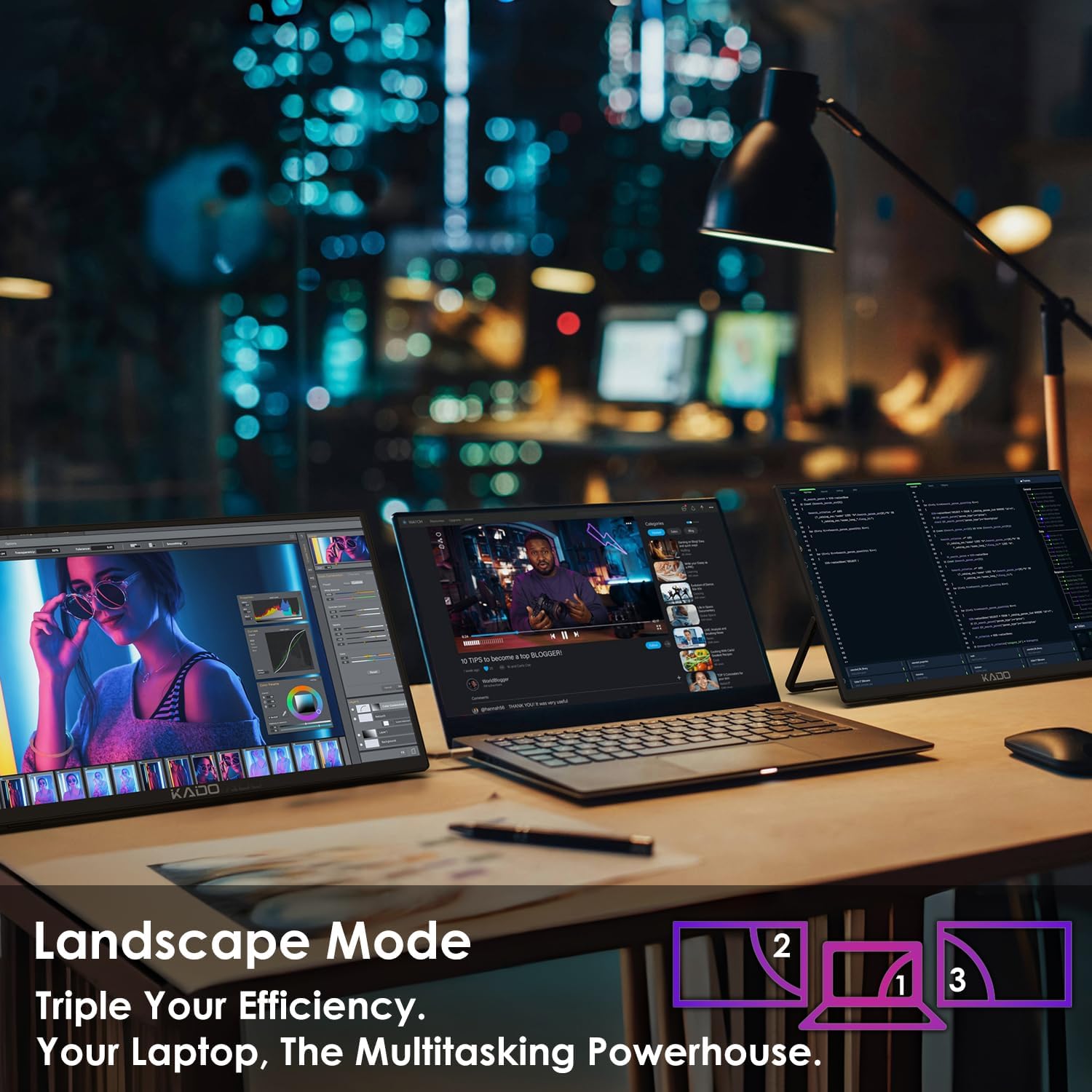 Build Your Ultimate Gaming/Office Setup: With dual portable monitors at 15.6" FHD 1920x1080, you can create your ultrawide workstation by placing them left and right next to your laptop, or fit them into your stacked monitor setup vertically to maximize desk space.