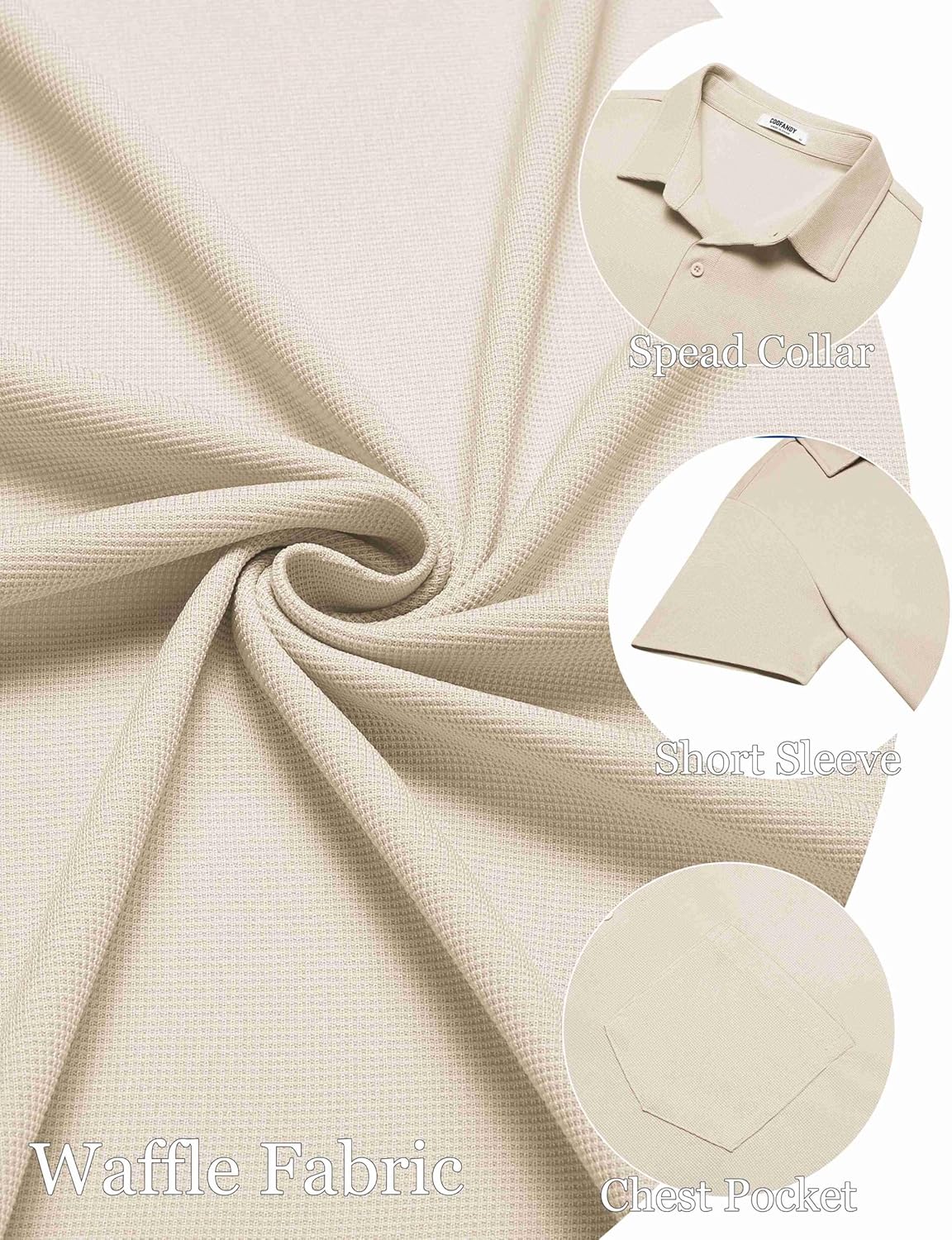 Special Design---COOFANDY Waffle Knit Wrinkle-Free Stretch Textured Shirt, featuring a special waffle texture, classic button-down collar, button closure, short sleeves, adds a touch of sophistication and fashion to the shirt