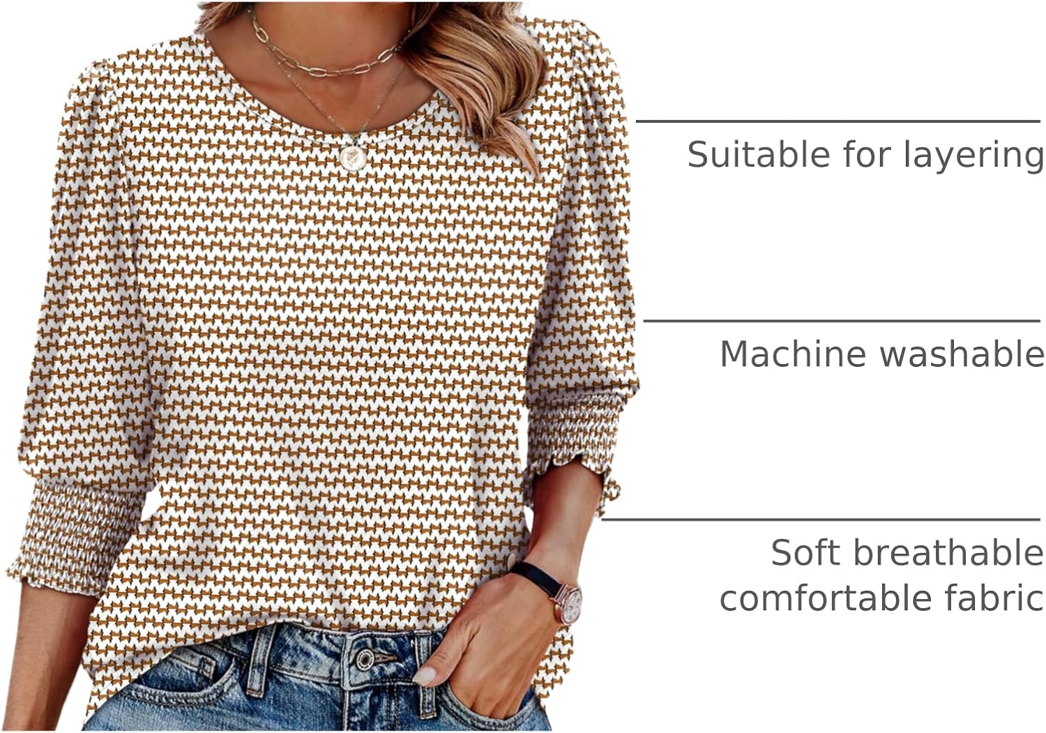 ♥Feature-- The 3/4 sleeve tops for women is very cute with elastic cuffs which is perfect for business casual wear. Basic Crew Neck with curved hem design provides a flattering fit. Easy to dress up or down.