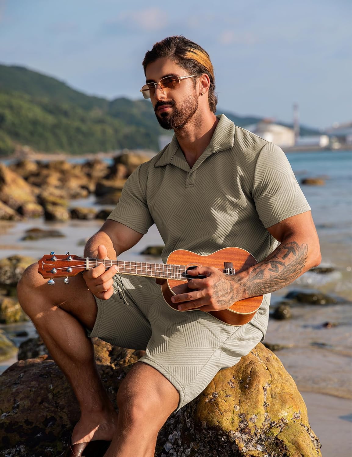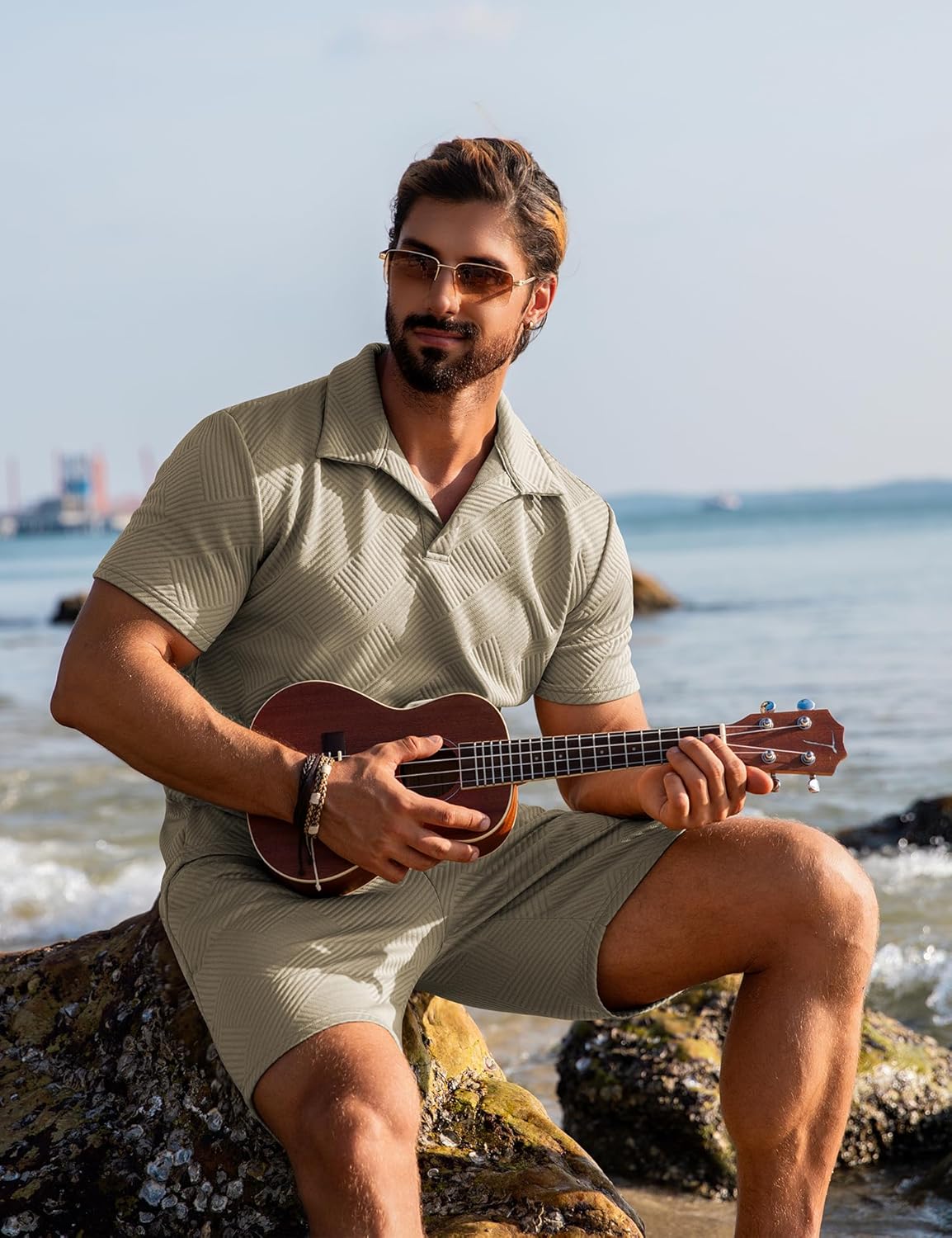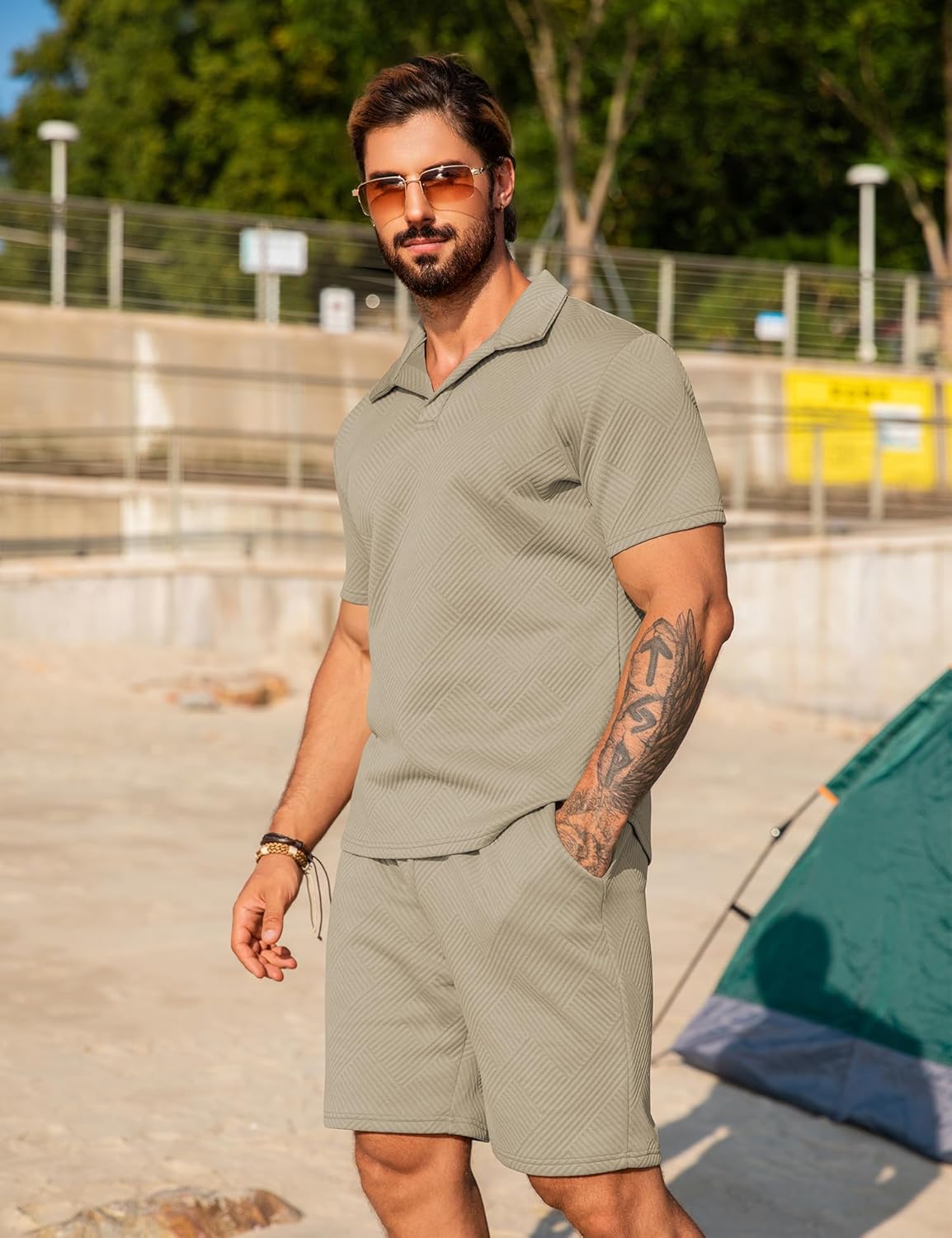 【Stylishly Designed Short Sets】: The short sleeve polo shirt in this set features a classic lapel neck design, adding a touch of sophistication. The men's casual shorts come with two convenient slant pockets, making this set the ultimate choice for those laid - back, fun - filled days in the sun. Whether you're hanging out at a party or relaxing on the beach with friends and family, this mens outfit has got you covered.