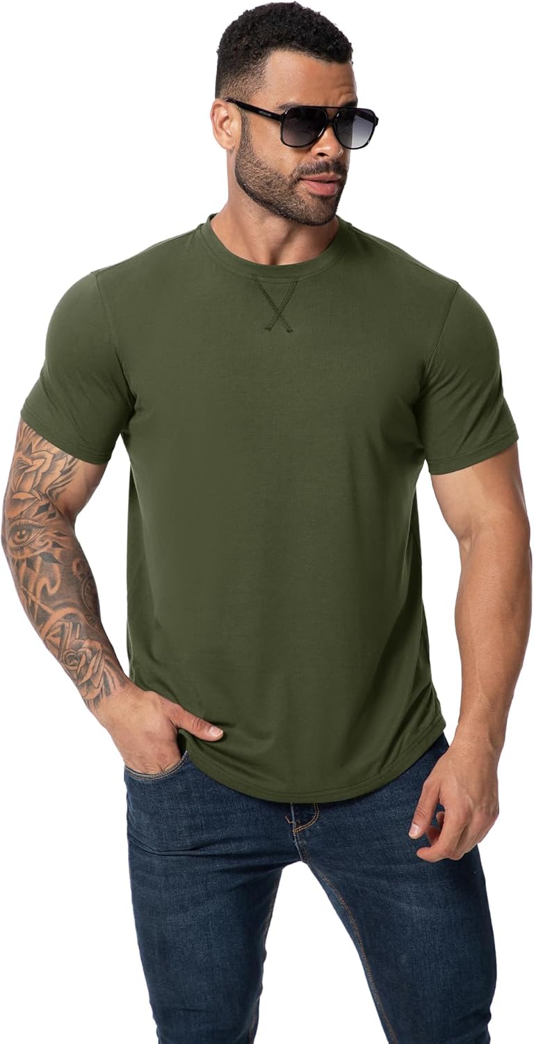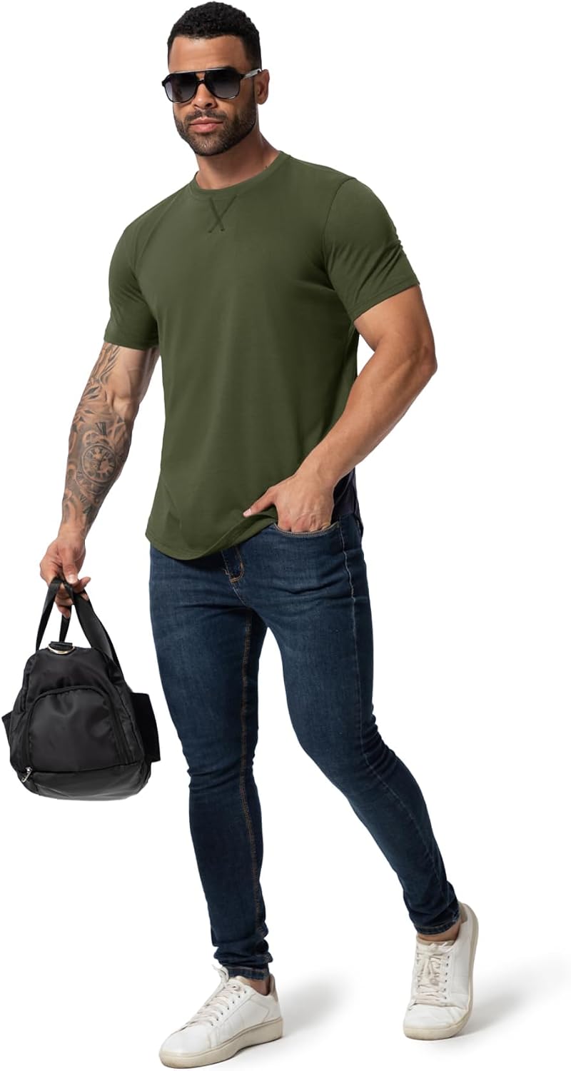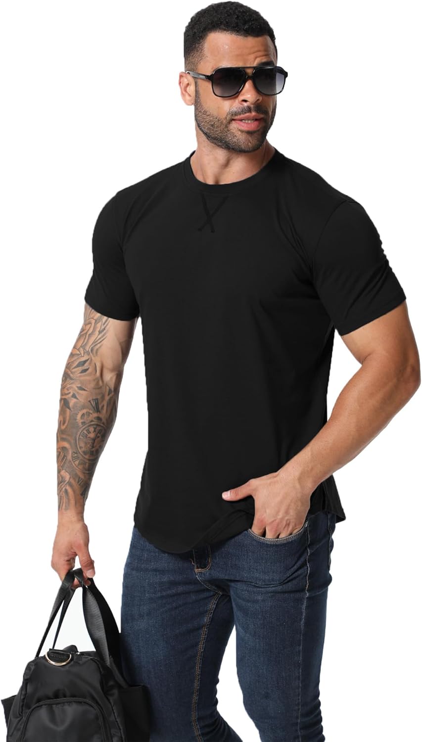 【True Modern Essential】The longline T-shirts featuring a side split hem and extended scallop bottom hem to negate shirt ride up when bending, jumping, and squatting. The classic crew neck fit provides a casual everyday look.
