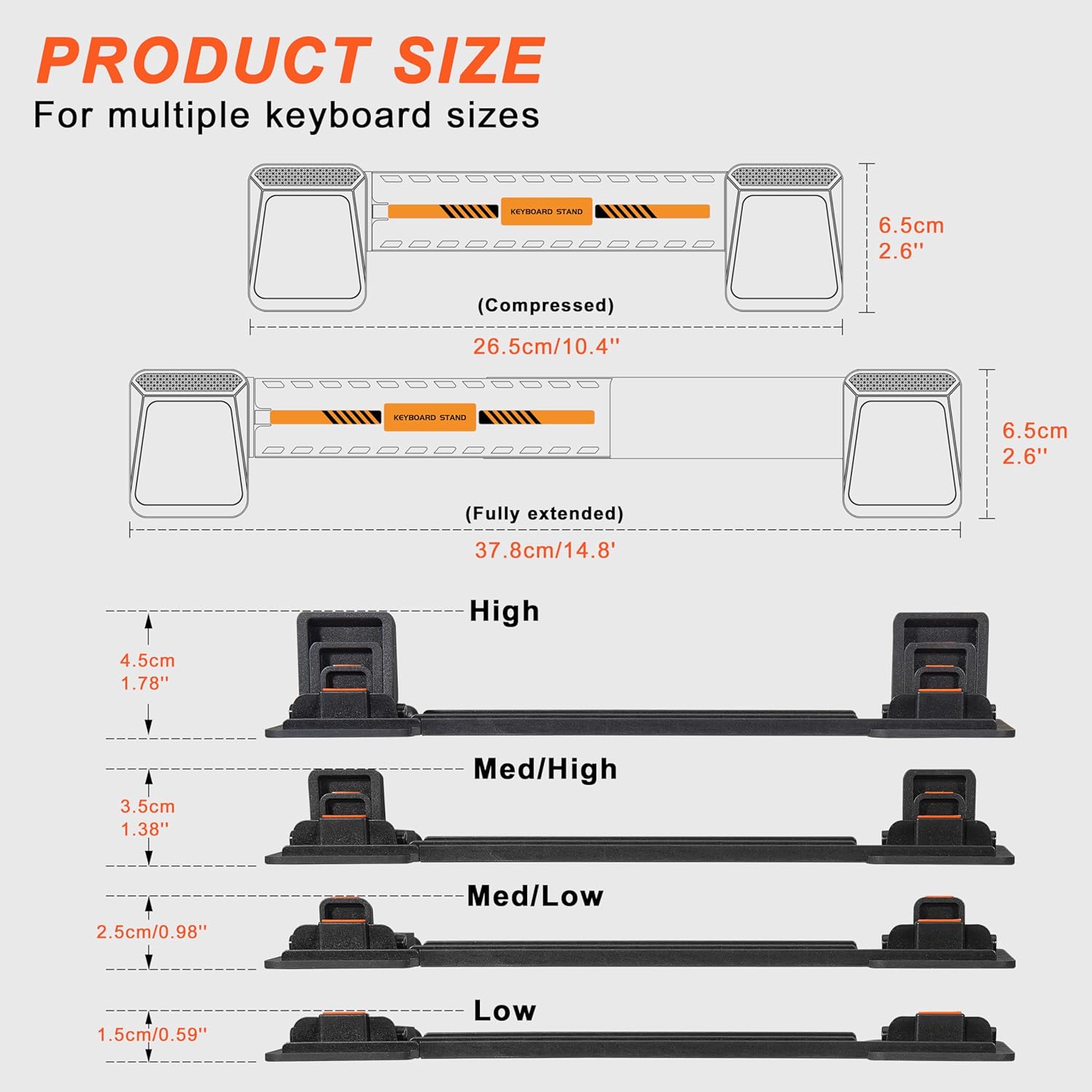 EXTENDABLE DESIGN: This extendable keyboard stand for desk fits compact to full-size keyboards, including Apple Magic Keyboard (with or without numeric keypad) and mechanical keyboards, etc. (NOTE: For flat-back keyboards only)