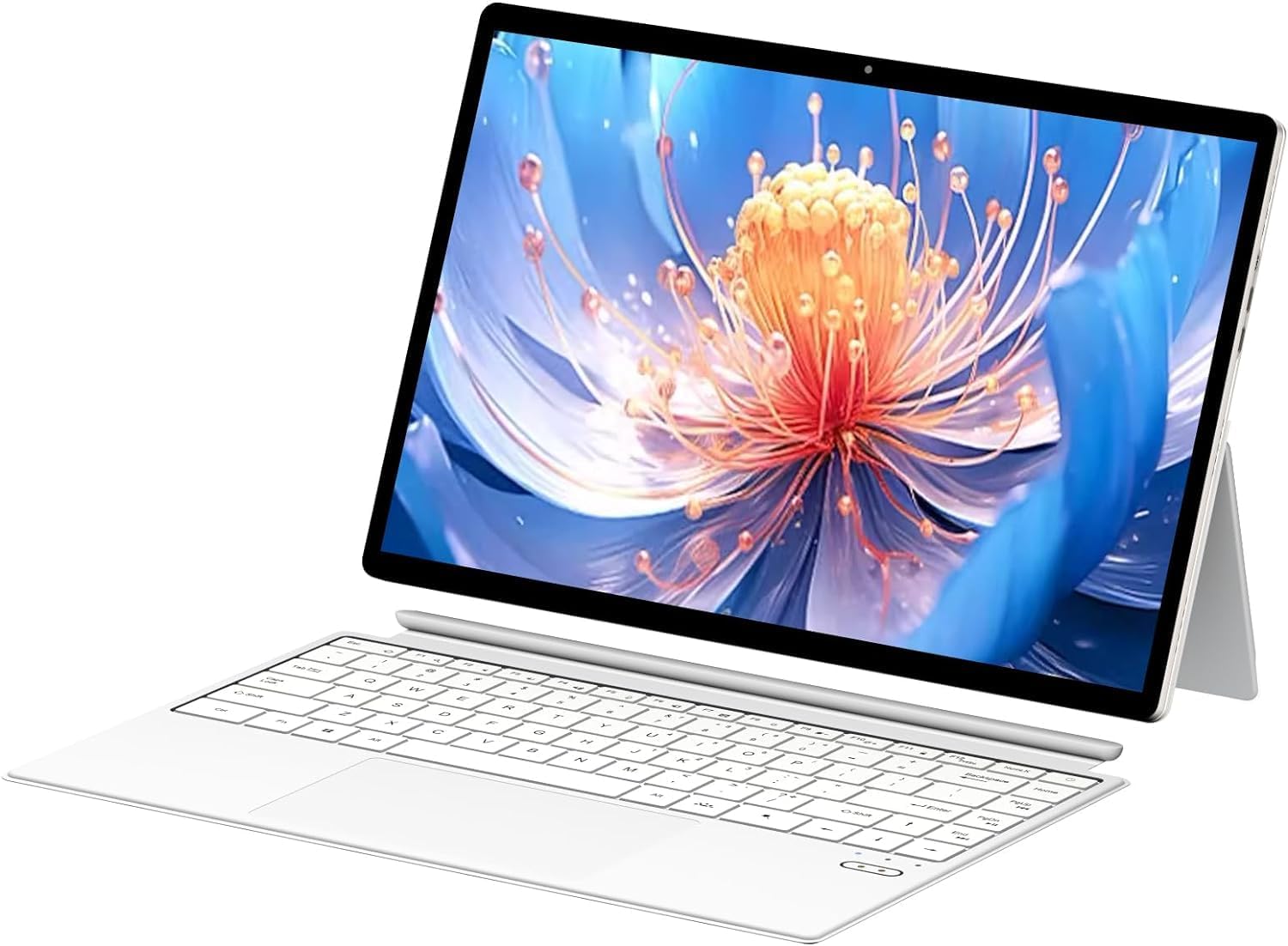 Tablet supports any angle fixation and comes with detachable backlit keyboard.