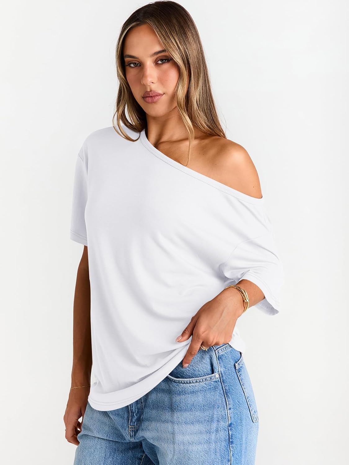 Design: The oversized tops for women feature an off the shoulder cut for femininity. This trendy fashion loose shirts for womens adds a good wearing experience, while the short sleeves ensure versatility