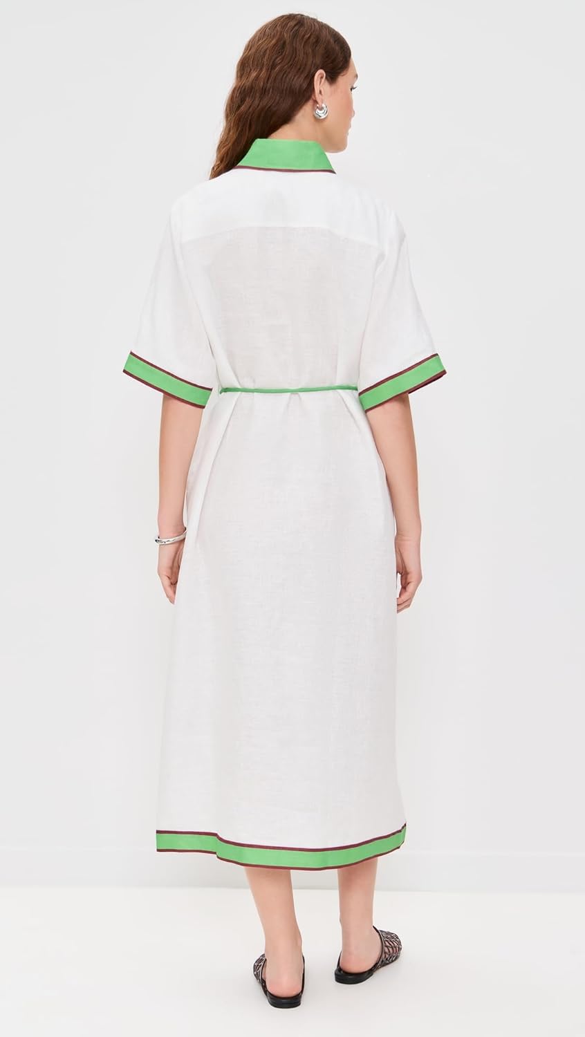 Runs large; designed with an oversized silhouette. For a slimmer fit, size down, The optional belt can be used to cinch the waist. Linen fabric has a breathable feel and offers no stretch. Skin-tone undergarments are recommended.