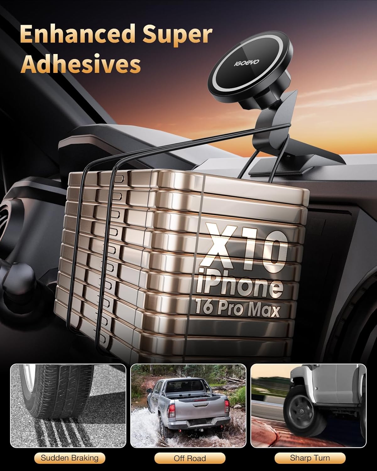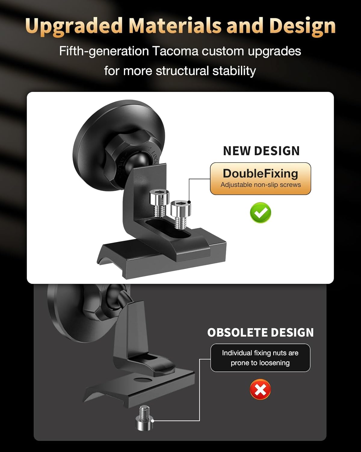 Upgraded Magnetic Phone Mount for Toyota Tacoma:Experience unmatched stability with our newly upgraded magnetic phone holder, specifically designed for 2016–2023 Toyota Tacoma dashboards. With a reinforced base and ultra-strong magnet, this mount offers one-second snap-on installation and keeps your phone secure even on bumpy trails or off-road driving. A must-have Tacoma accessory for safer, more comfortable driving.