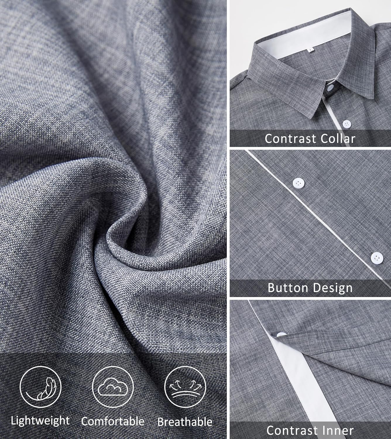 Material: Our Button Down Short Sleeves shirts made from Polyester,Quick Dry on the summer,Light Weight, Soft hand-feel,Comfortable and Breathable for the all day.