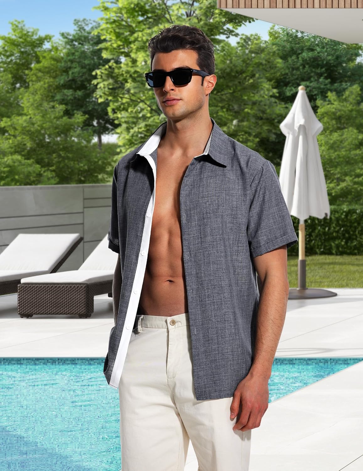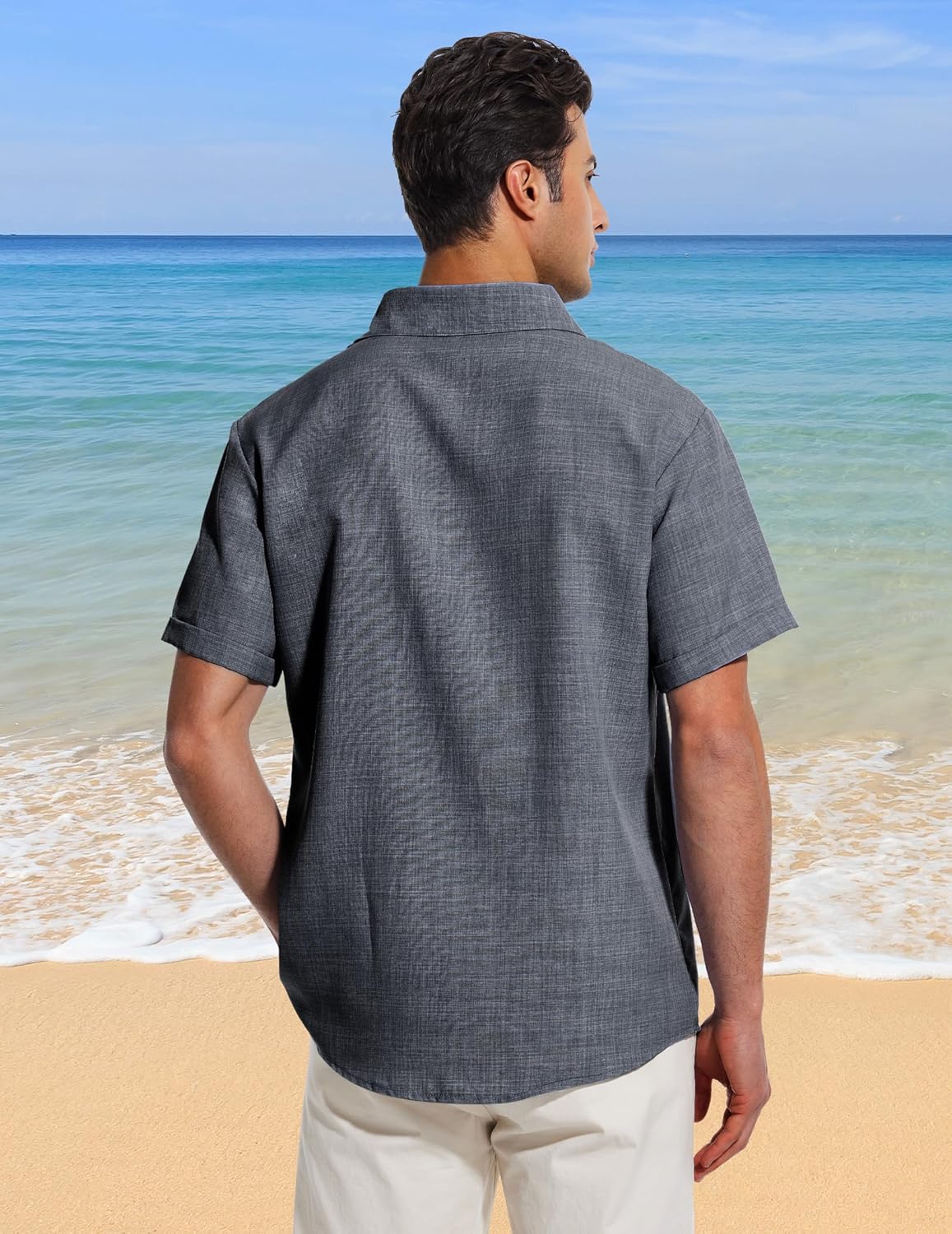 Fashion Style Design :The mens beach shirt designed with short sleeve, spread collar, button closure.Contrast Color on Collar making you look stylish and decent fancy.