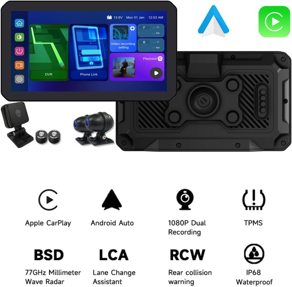 Real-Time Tire Pressure and Temperature Monitoring – Provides comprehensive tire pressure and temperature monitoring functions, displaying tire data in real-time and alerting you in case of abnormalities to ensure driving safety. Multi-tire display is supported, making it suitable for motorcycles and various vehicle types.