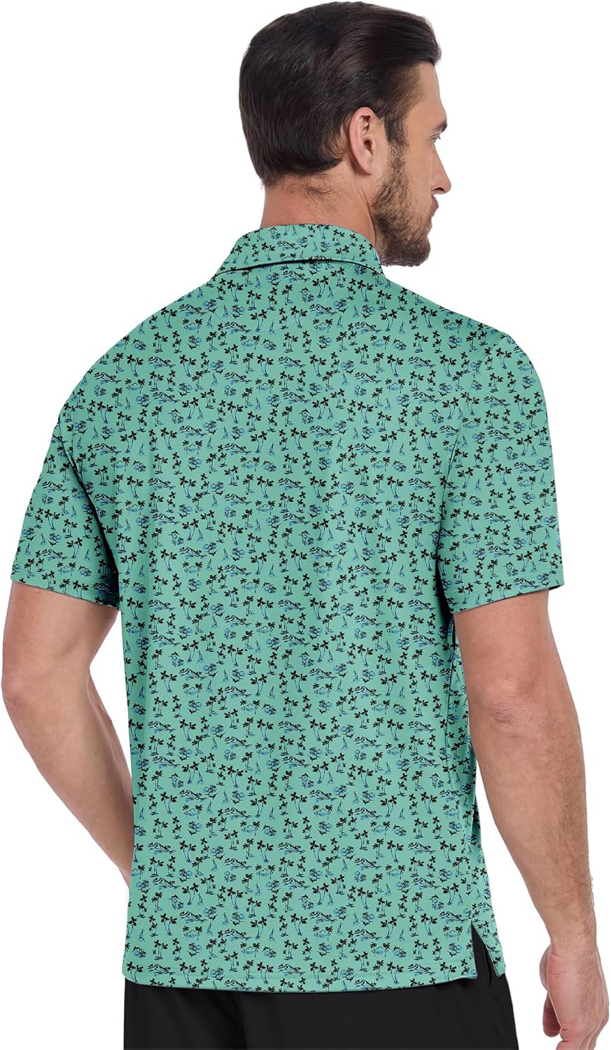 MULTI-MATCHED STYLE: You can match this mens golf polo short sleeve with shorts, dress pants, casual pants, or wear under coat or blazer for a casual or formal look. This print golf shirts will refresh your summer look