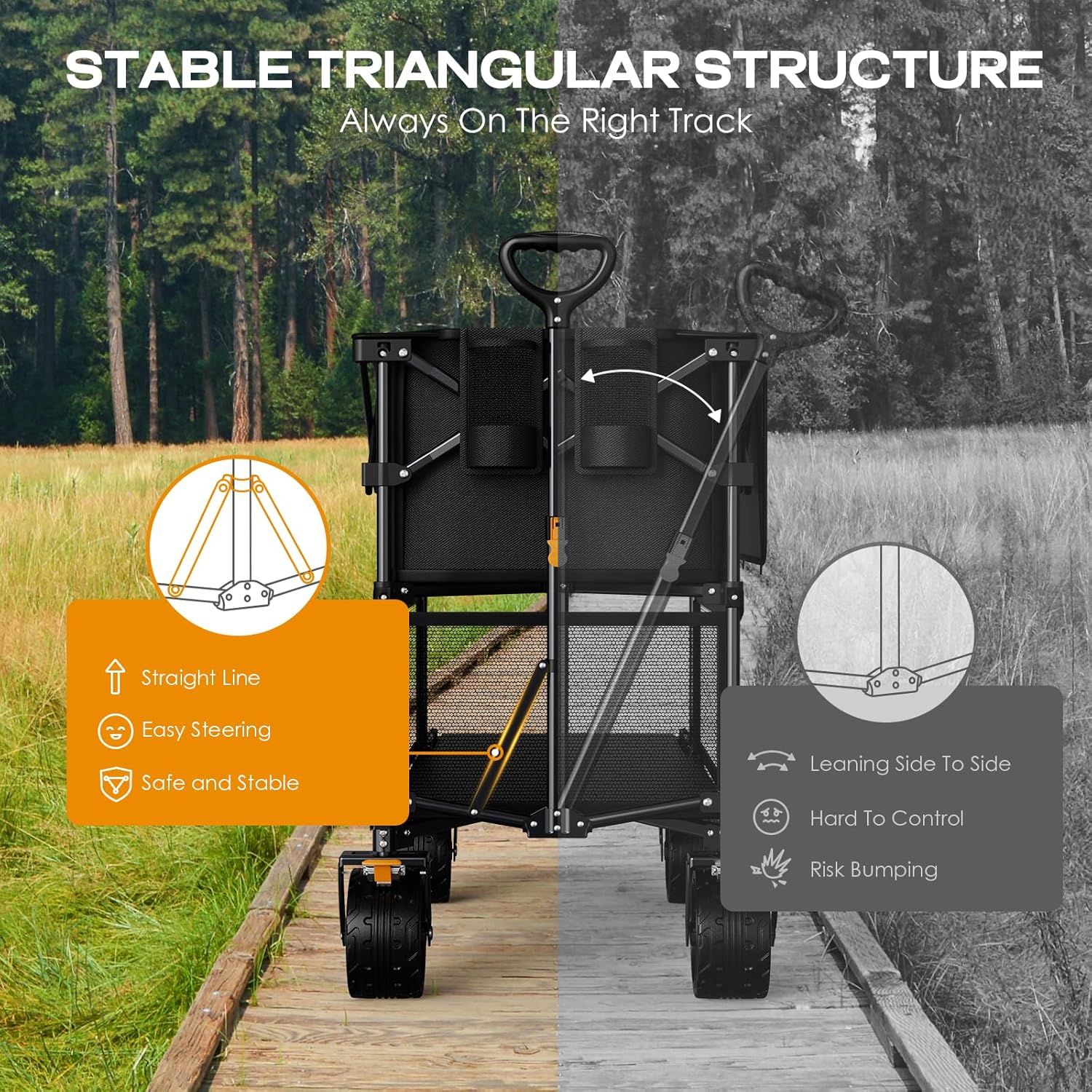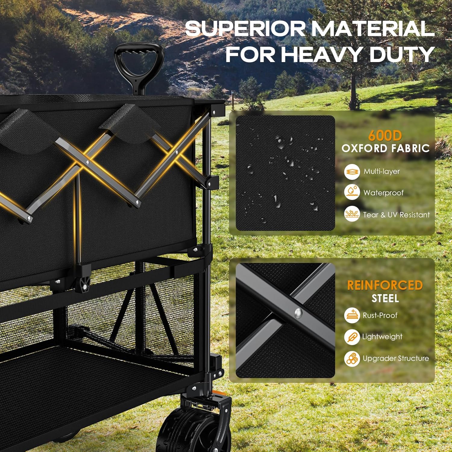 Uyittour Foldable 50''L Extra Long Double Decker Wagon for Sport, 400L Collapsible Heavy Duty Wagon Cart with Big Wheels, ...