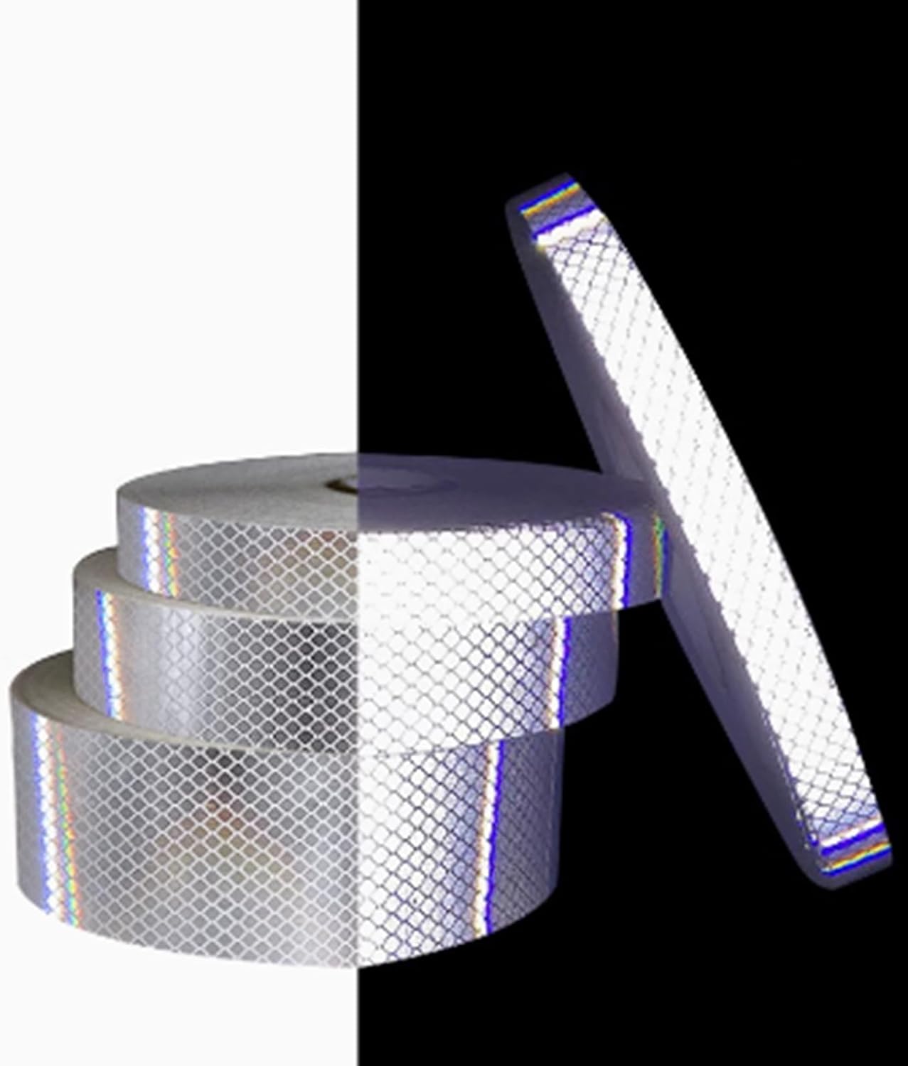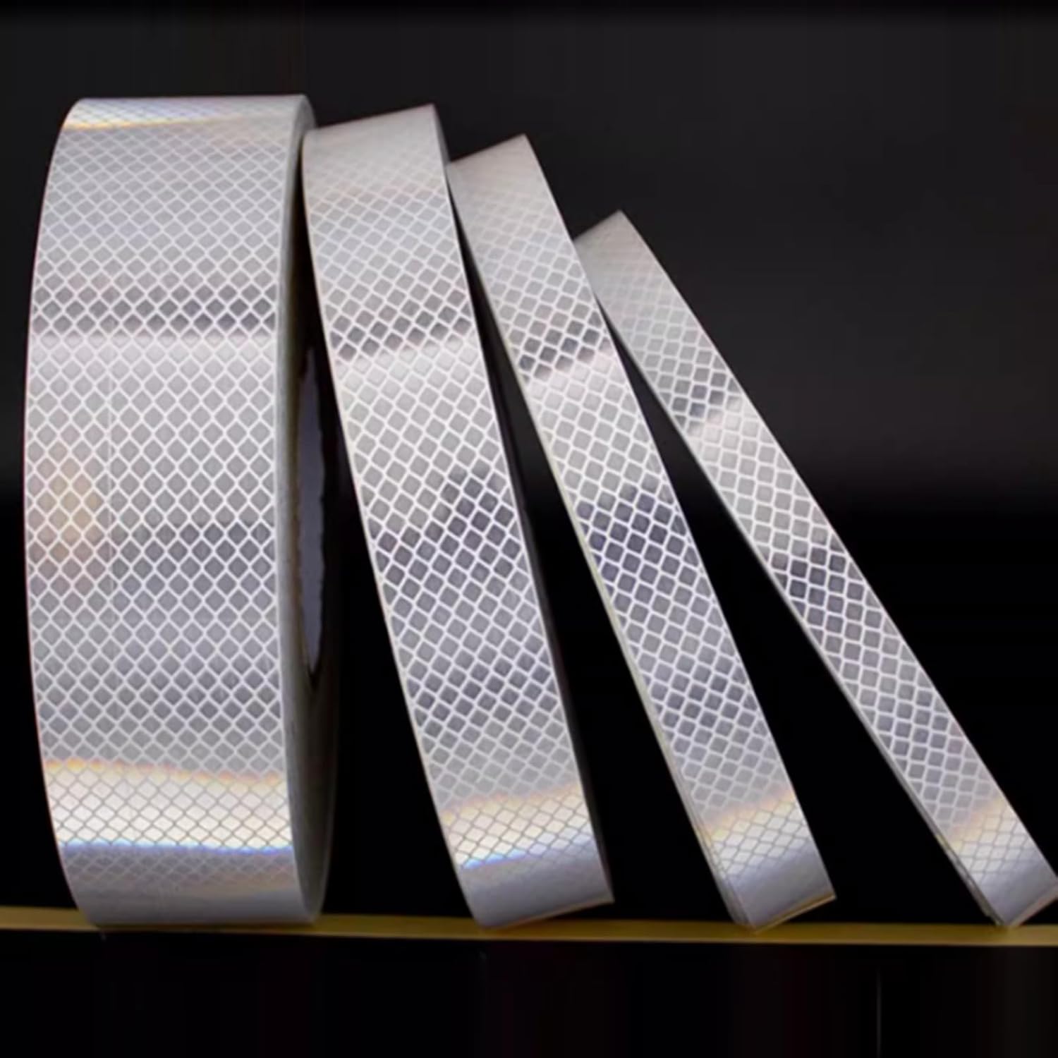 Microprism Reflection Technology:Greatly improve the reflectivity coefficient.Strong adhesive backing firmly bonded:Adopting 3M strong adhesive coating technology. Color: White.Size: 5cm width x 1m Length